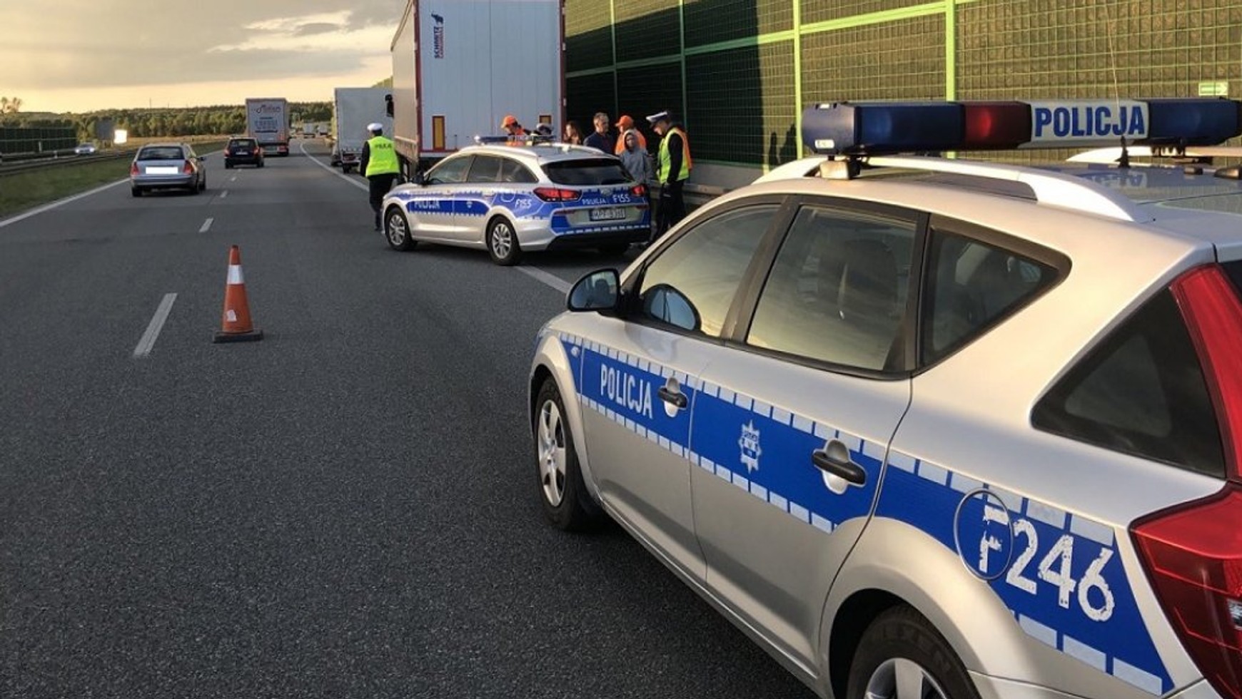 We wskazaną lokalizację natychmiast wyruszył patrol. Policjanci po drodze zobaczyli zniszczone bariery drogowe. Nieco dalej stał opisywany ciągnik siodłowy z naczepą, a przy nim trzy osoby – sprawca oraz małżeństwo, które uniemożliwiło mu dalszą jazdę po kolejnym uderzeniu w barierę. Wtedy zatrzymali swój samochód, podbiegli do ciężarówki, zabrali kierowcy kluczyki i pilnowali go do czasu pojawienia się policji.