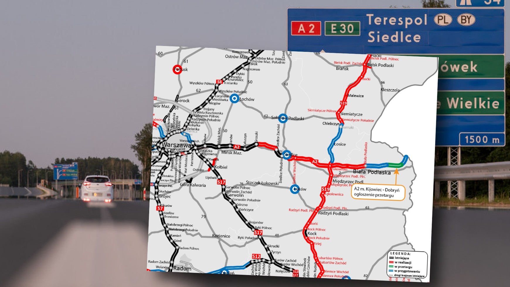 W toku jest też umowa na wykonanie projektu budowy 32,3 km autostrady A2 od węzła Biała Podlaska do przejścia granicznego w Kukurykach. Budowa podzielona jest na trzy odcinki: