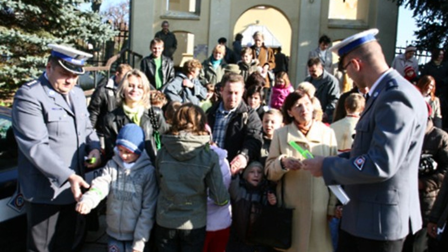 Dzisiaj wszyscy chętni mogli wyposażyć się w odblaski przed kościołem w Dysie. Po południowej mszy na placu przed kościołem, policjanci i ministranci rozdawali odblaskowe paski i breloki dzieciom oraz młodzieży. Chętnych nie brakowało również wśród dorosłych.