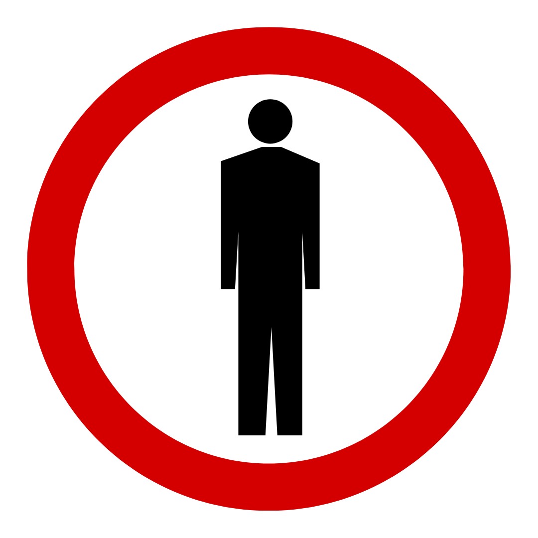 Znak ten oznacza zakaz poruszania się pieszych po tej stronie drogi, na której został on umieszczony. Stosuje się go w miejscach, gdzie przechodzenie pieszych mogłoby stanowić zagrożenie dla ich bezpieczeństwa.
