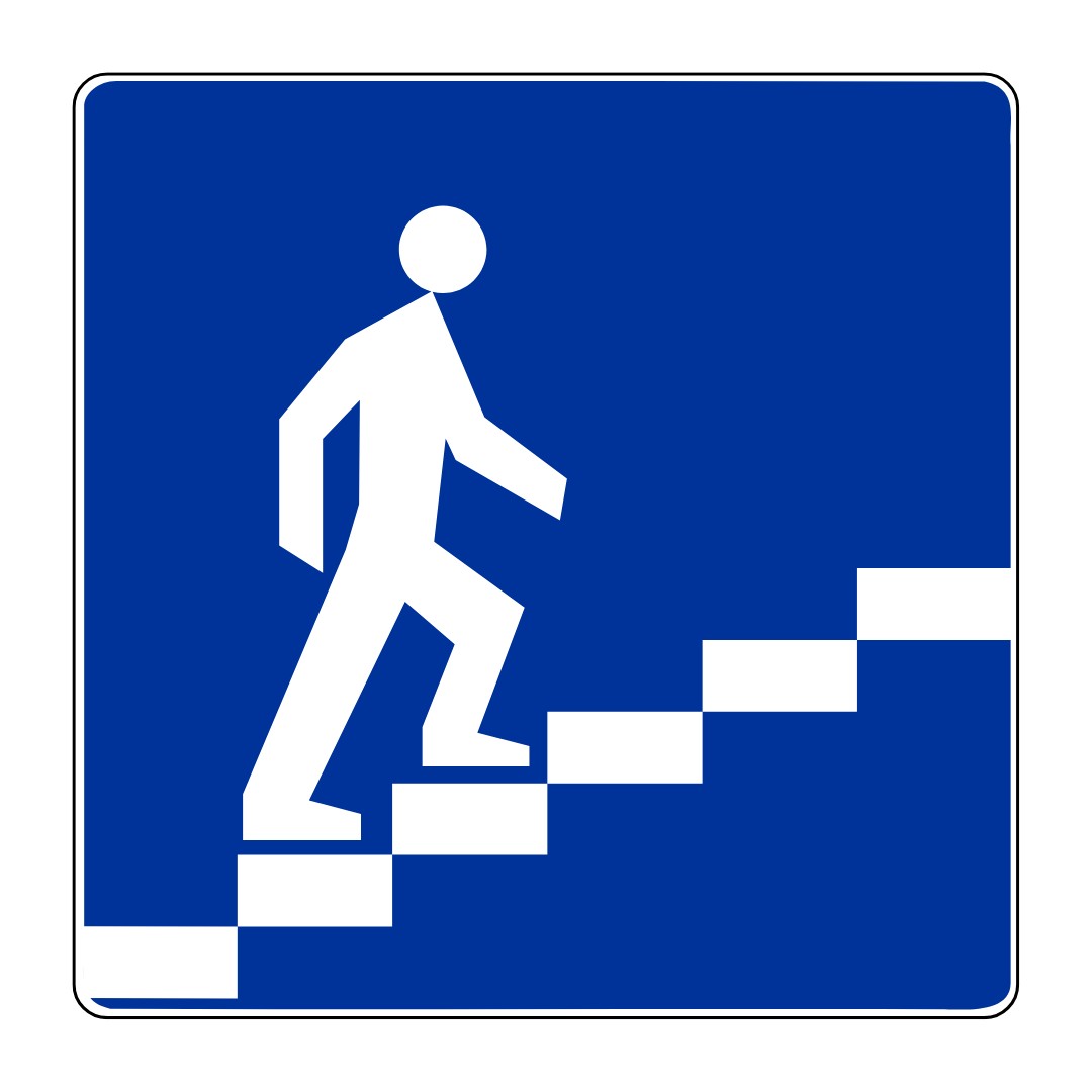 Znak ten wskazuje, że przejście dla pieszych znajduje się na wyższym poziomie niż droga.