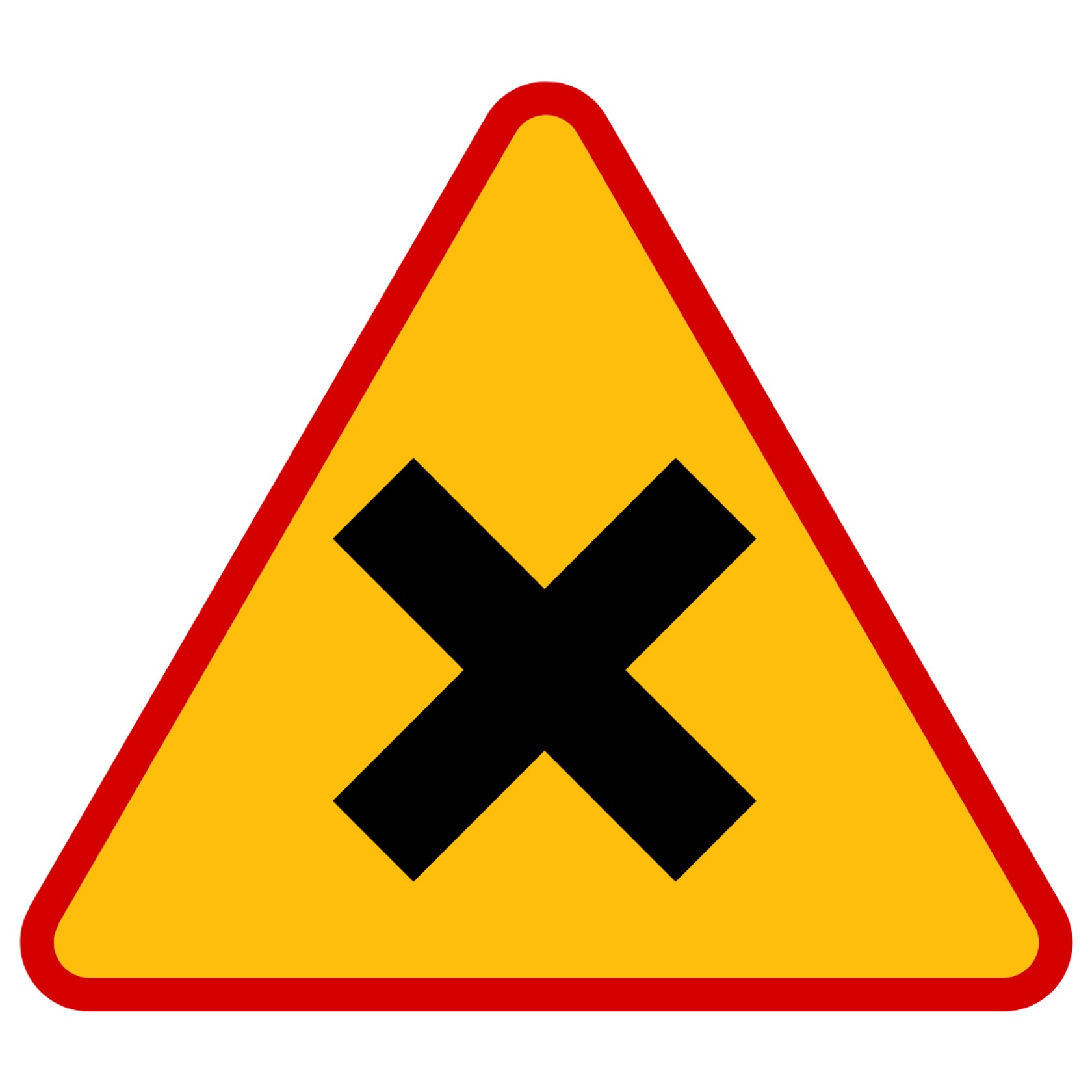 Kierowcy na takim skrzyżowaniu muszą zachować szczególną ostrożność i ustępować pierwszeństwa innym pojazdom, które nadjeżdżają z prawej strony.