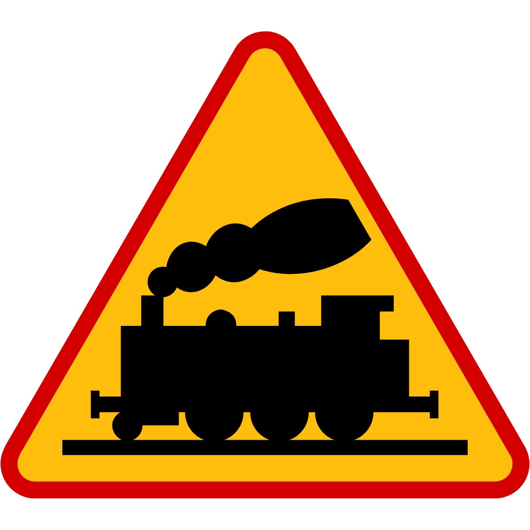 4. Poniższy znak ostrzega, że zbliżamy się do przejazdu drogowo-kolejowego:
