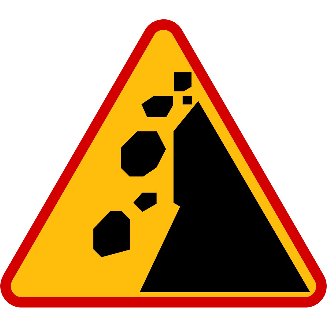 Znak ten ostrzega kierowców przed miejscem, w którym na drogę mogą spadać duże odłamki skalne.