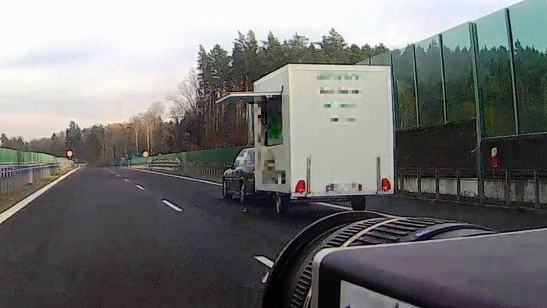 Taki zestaw poruszał się na warmińsko-mazurskim odcinku drogi krajowej nr 16. Wystający element przyczepy stwarzał zagrożenia dla innych uczestników ruchu, więc inspektorzy jak najszybciej zatrzymali kierowcę. Ten usprawiedliwiał się, że nie zauważył niezamkniętej klapy. Trudno w to uwierzyć.
