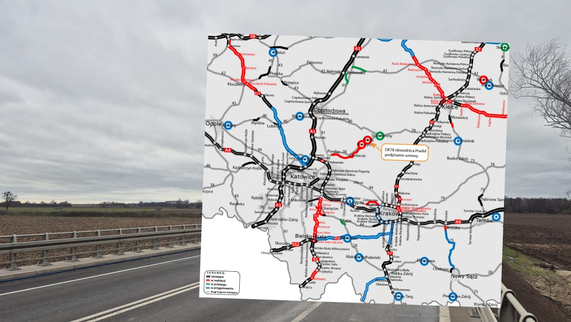 Nowa inwestycja w woj. śląskim jest kolejnym elementem nowego przebiegu DK78 między Siewierzem a Szczekocinami, który obejmuje ok. 50 km drogi. "W ramach Rządowego Programu Budowy Dróg Krajowych (RPBDK) budujemy obwodnicę Poręby i Zawiercia o długości 24,3 km. Jej przedłużenie o kolejne ponad 9 km powstaje w ramach PB100. To obwodnica Kroczyc, na której realizację 11 października 2024 r. podpisaliśmy umowę" — informuje GDDKiA.