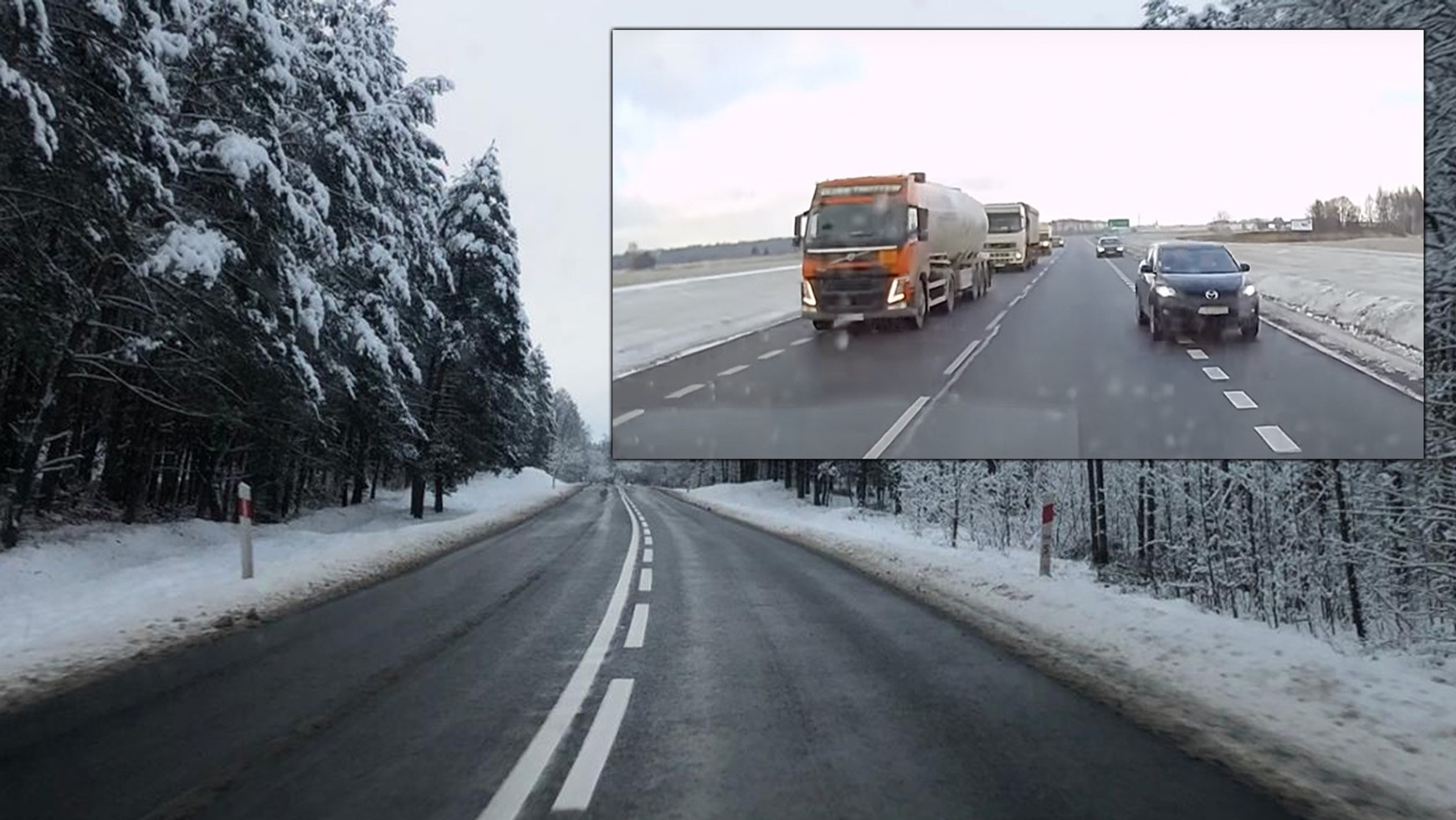 Jednopasmowa droga, warunki zimowe, zakręt, a za nim jadące wprost na ciebie samochody, które postanowiły wyprzedzić kolumnę zbyt wolno jadących w ich mniemaniu ciężarówek. Taki widok spotkał kierowcę auta, który zamieścił w internecie nagranie ze swojego wideorejestratora. To typowy scenariusz tragicznych w skutkach zderzeń czołowych, które bardzo często kończą się ofiarami śmiertelnymi.