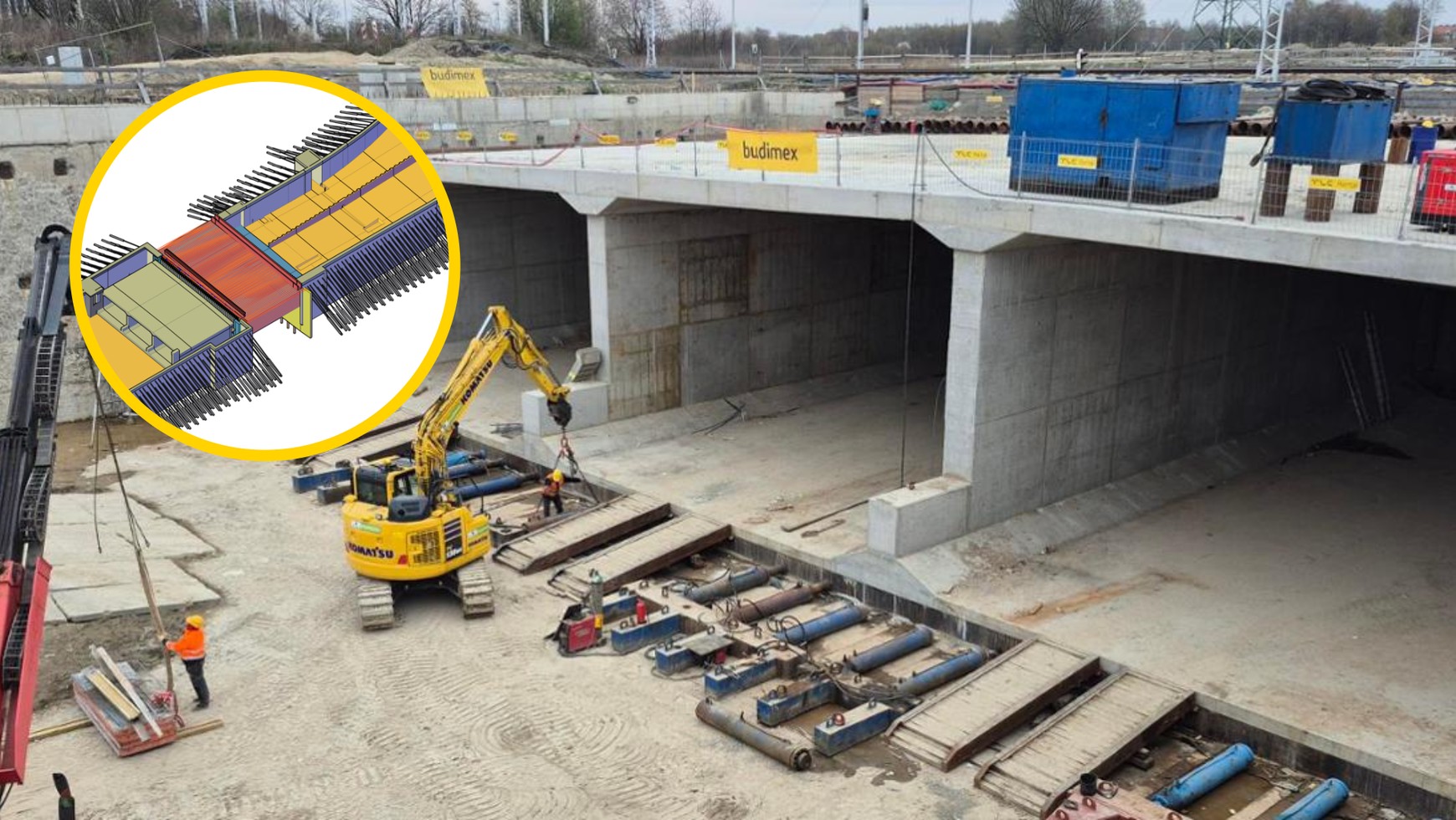Droga musiała przejść pod nimi, ale ze względu na konieczność utrzymania ruchu pociągów nie można było po prostu rozebrać torów i zbudować nad nią wiaduktu kolejowego. Zdecydowano się więc na rozwiązanie, które pozwala na budowę przejazdu pod torami bez przerywania ruchu pociągów.