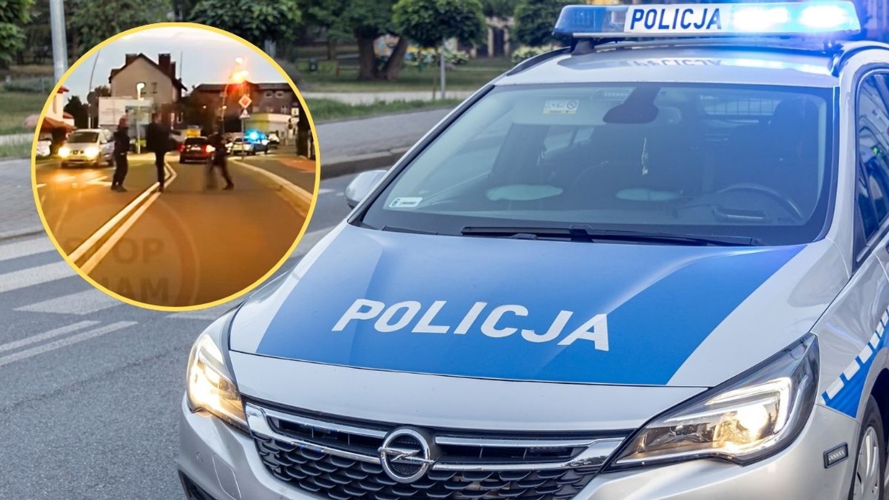 — Bije się z policjantami facet — słychać kobiecy głos. — Nie podjeżdżaj. Jeszcze na auto nam wleci — komentuje mężczyzna z samochodu. Kobieta mu odpowiada: — Wyjmij gaz pieprzowy.