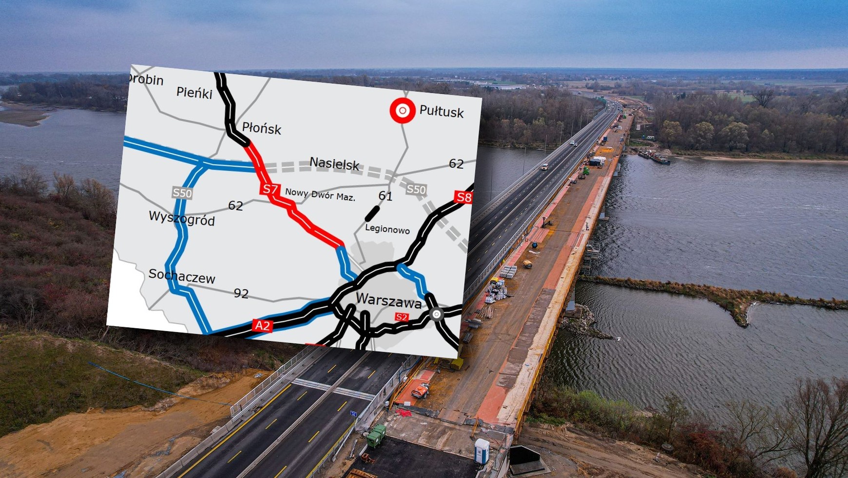 Jak możemy przeczytać na stronie inwestycji, pierwszy z odcinków, mający ok. 12,9 km, osiągnął 65,86 proc. zaawansowania prac, co oznacza, że planowane na maj oddanie trasy jest wykluczone. Na środkowym odcinku Załuski-Modlin, o długości 12 km prace są bardziej zaawansowane i wynoszą 73,43 proc. Najlepiej prezentuje się odcinek Modlin-Czosnów, który jest ukończony w 82,15 proc. Rzeczniczka GDDKiA dodała, że dla obu tych fragmentów terminy oddania zostały wydłużone do sierpnia, jednak wykonawcy wnoszą o kolejne przeniesienie terminu lub dodatkowe środki finansowe.
