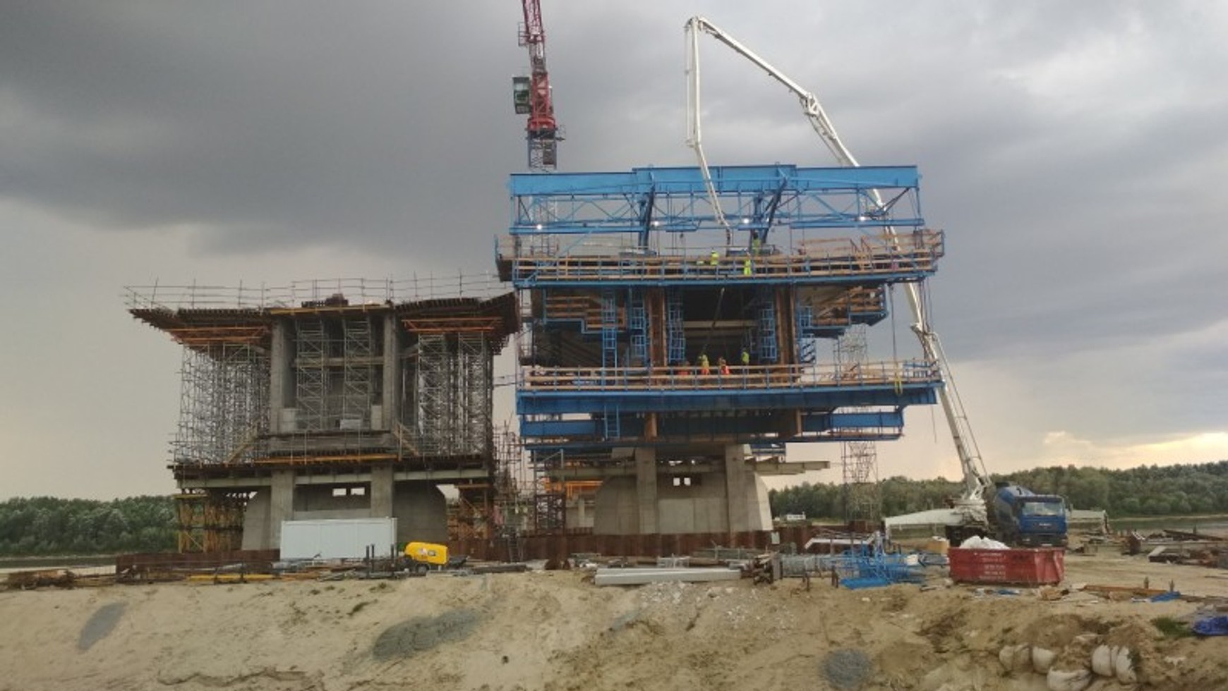 GDDKiA podała, że na odcinku mostowym systematycznie powiększa się konstrukcja nowej przeprawy przez Wisłę. "Na węźle Patriotów pociągi wróciły na pierwotny przebieg torów, a w miejscu dotychczasowego objazdu kolejowego powstanie dodatkowy wiadukt pod czwarty tor" - wskazano.