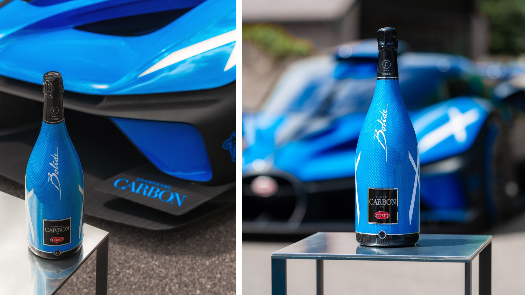 Butelka jest inspirowana produkowanym od 2021 r. hipersamochodem Bugatti, co widać już na pierwszy rzut oka. Znajdują się na niej dwa charakterystyczne znaki "x", nawiązujące do świateł, jakie pojawiły się w tym modelu. Na szyi znajduje się natomiast napis "Bolide", a pod spodem tabliczka w kolorze czarnym Champagne Carbon, ze srebrną obramówką i logiem Bugatti.