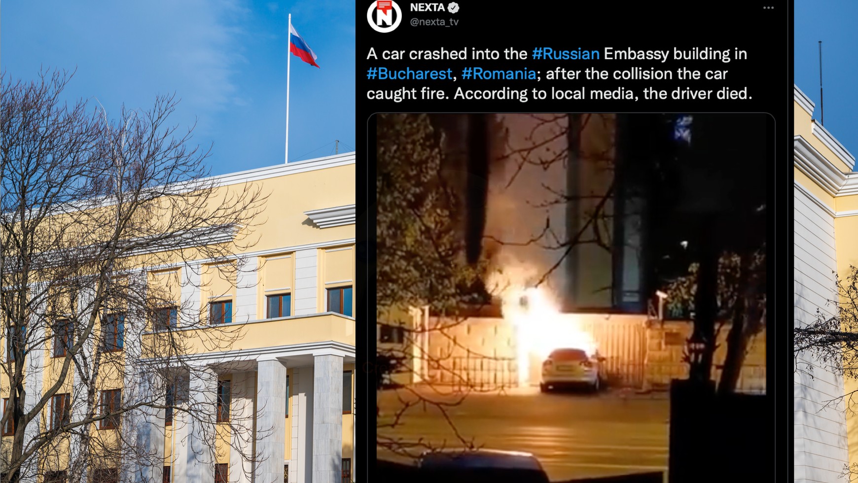Sytuacja wydarzyła się 6 kwietnia 2022 r. przed ambasadą Federacji Rosyjskiej w Bukareszcie. Na nagraniu opublikowanym przez NEXTA widzimy płonący samochód osobowy. Według lokalnych źródeł kierowca pojazdu zdołał ominąć żandarmerię pilnującą tego obiektu, po czym ze znaczną prędkością uderzył w ogrodzenie ambasady. Samochód, którym jechał, stanął w płomieniach.