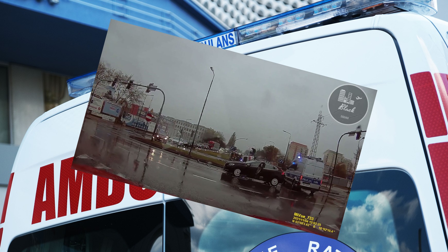 Kierowca karetki zdecydował się na pokonanie skrzyżowania na czerwonym świetle. Pomimo włączonych sygnałów dźwiękowych, na jego środku nie zauważył go prowadzący Volvo, skręcający w lewo z ul. Wyszyńskiego w ul. Kamienną. Jak dobrze widać na filmie pochodzącym z wideorejestratora w wyniku zderzenia dwóch pojazdów karetka przewróciła się ba bok.