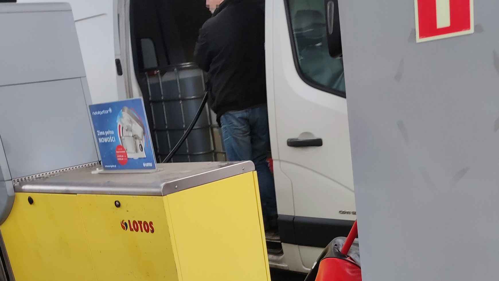 Na stację Lotos podjeżdżają dwa białe furgony, kierują się pod dystrybutory. Kierowcy wysiadają, nie zamierzają jednak tankować swoich samochodów. Po otwarciu bocznych drzwi aut widać, że wnętrze furgonów zajmują tysiąclitrowe mauzery – wielkie zbiorniki na paliwo. Po niedługim czasie furgony opuszczają stację wypełnione paliwem. Te same samochody kilka godzin później widziane są na innej stacji Lotos – znów tankują do mauzerów. Po co komu tyle paliwa? Łatwo się domyślić: na handel.