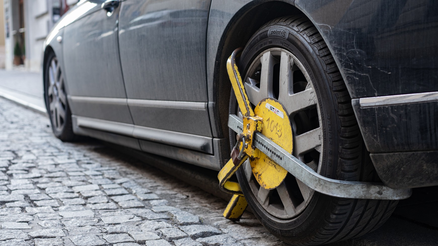 Zniszczona blokada na koła. Policja: przyjrzyjmy się temu autu