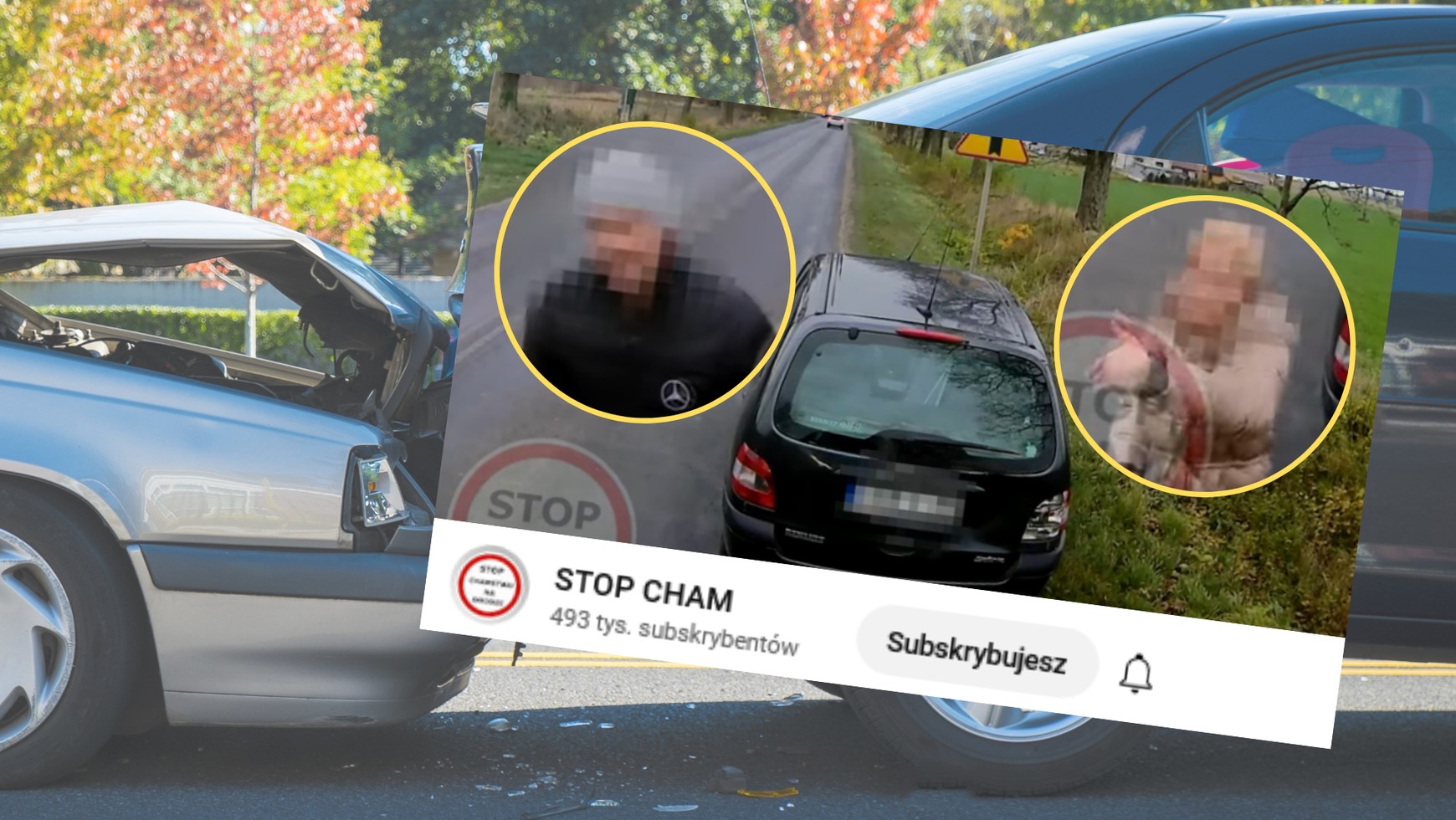 Na filmie widzimy, jak kierowca osobówki i jego pasażerka wysiadają razem, by ocenić zniszczenia, które pojawiły się w wyniku kolizji. Następnie podchodzą w kierunku kabiny tira. Kobieta wykonuje gest, machając nerwowo do mężczyzny, by ten natychmiast wysiadł z pojazdu.