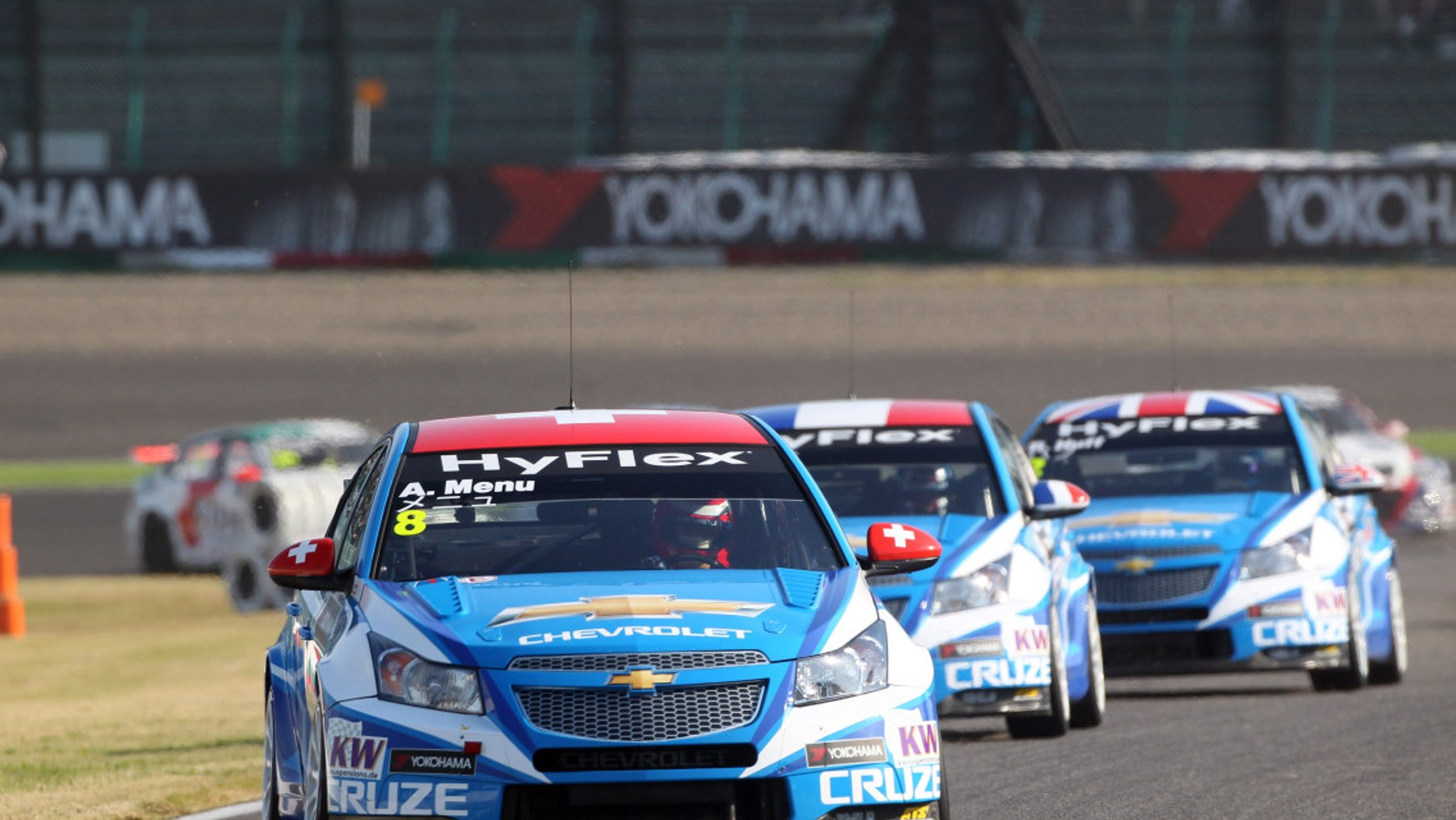 Weekend WTCC na japońskiej Suzuce odbył się w terminie 19-21 października. W pierwszym wyścigu kierowcy niebieskich Chevroletów Cruze zdominowali podium w kolejności: Alain Menu (4 zwycięstwo w sezonie), Yvan Muller oraz Rob Huff. Czwarty w wynikach Gabrielle Tarquini w Seacie Leonie stracił blisko 14 sekund do zwycięzcy. Dopełnieniem potrójnego zwycięstwa Chevroleta w pierwszym wyścigu było piąte miejsce w stawce zdobyte przez Alexa MacDowalla, jadącego Chevroletem Cruze zespołu Bamboo Engineering, który zajął tym samym czołowe miejsce wśród niezależnych kierowców.