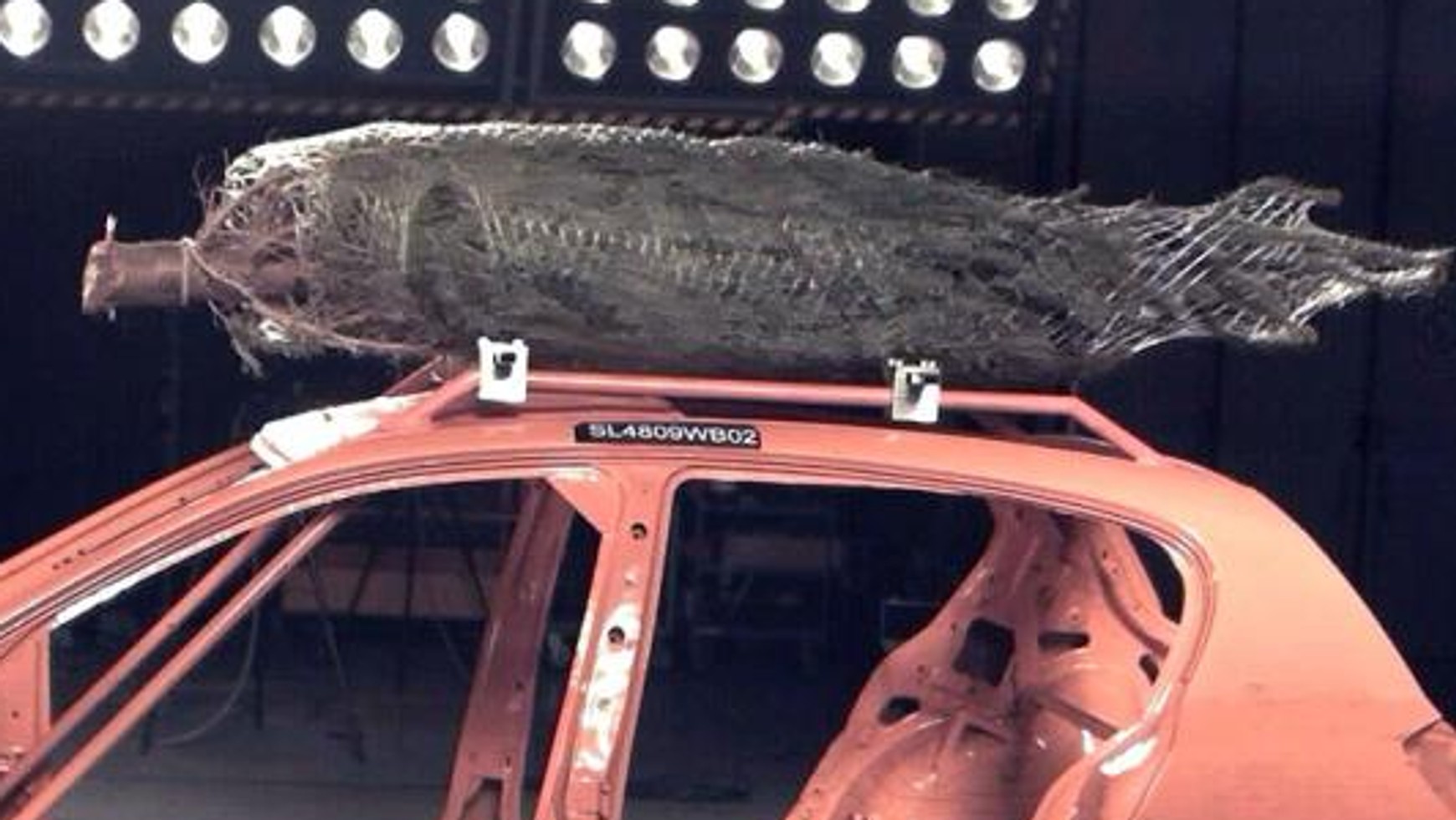 Autoklub przeprowadził próby z choinką o masie 32 kilogramów, a do testów wykorzystał Opla Astrę w wersji, nazwijmy ją, Superleggera, ponieważ był to tylko szkielet auta.