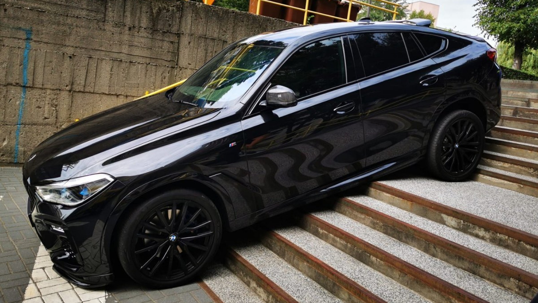 Nietypowy test nowego quasi-terenowego BMW zakończył się zawiśnięciem samochodu i uszkodzeniem podwozia, progów oraz dokładki pod przednim zderzakiem. Ze schodów, będących częścią ciągu pieszego, nie korzystała w tym momencie żadna osoba, więc nikt nie został poszkodowany. Najbardziej ucierpiała duma kierowcy, bo dużego SUV-a nie udało się wydostać bez interwencji wyspecjalizowanych pracowników pomocy drogowej.