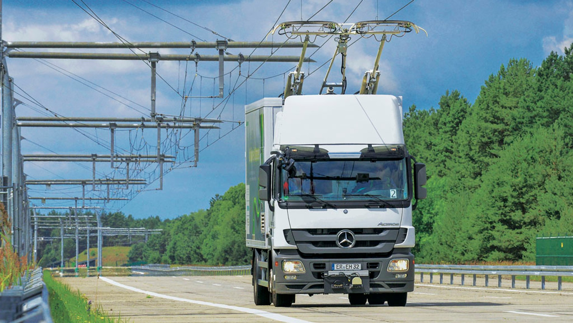 Obraz wyświetlany na ekranie przypomina proste gry wideo, w które dawniej grało się na automatach. Masywny monitor w kabinie Mercedesa Actrosa ma jednak pokazywać przyszłość, nie przeszłość. W każdym razie przyszłość samochodów ciężarowych – taką, jak ją sobie wyobraża Siemens. Monachijski koncern chce przenieść na drogi sprawdzoną na kolei technikę sieci trakcyjnych i w ten sposób zrobić z ciężarówek pojazdy elektryczne przyjazne środowisku naturalnemu.