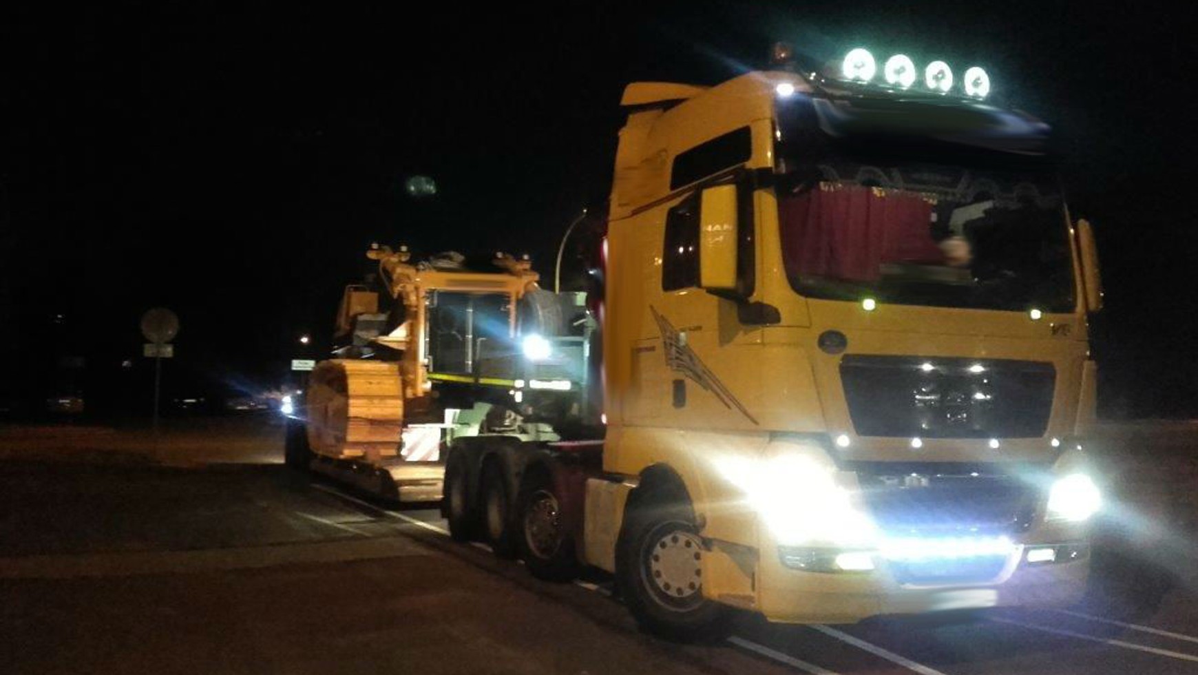 Ciężarówkę przewożącą potężną spycharkę gąsienicową zatrzymał patrol policji i Inspekcji Transportu Drogowego. Pojazd zamiast maksymalnych 40 ton, ważył aż 86,5 tony, czyli dopuszczalna waga została przekroczona o 46,5 tony (!). To jednak nie jedyne uchybienia przewoźnika.