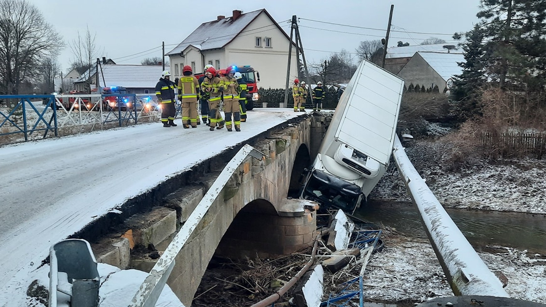 Do wypadku doszło około godziny 9 na lokalnej drodze w Zagrodnie. Ciężarówka wpadła w poślizg i stoczyła się do rzeki. "Droga w miejscu wypadku była nieprzejezdna; kierowcy ciężarówki nic się nie stało i o własnych siłach wyszedł z pojazdu. Policja ustala okoliczności tego zdarzenia" - powiedział PAP podkomisarz Wojciech Jabłoński z biura prasowego Komendy Wojewódzkiej Policji we Wrocławiu.
