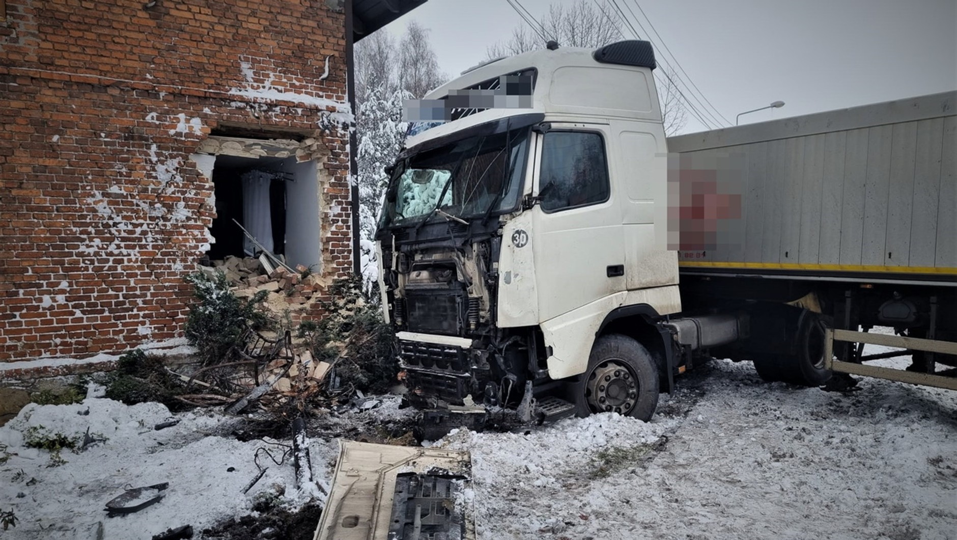 "Do zdarzenia doszło dziś po godzinie 9 w Ornontowicach na ulicy Zamkowej. Kierujący samochodem ciężarowym 65-latek nie dostosował prędkości do warunków drogowych, utracił panowanie nad pojazdem i wpadł w poślizg, w efekcie czego wjechał w budynek mieszkalny. Mieszkaniec Katowic był trzeźwy. Nikomu nic się nie stało" — przekazała komenda w Mikołowie.