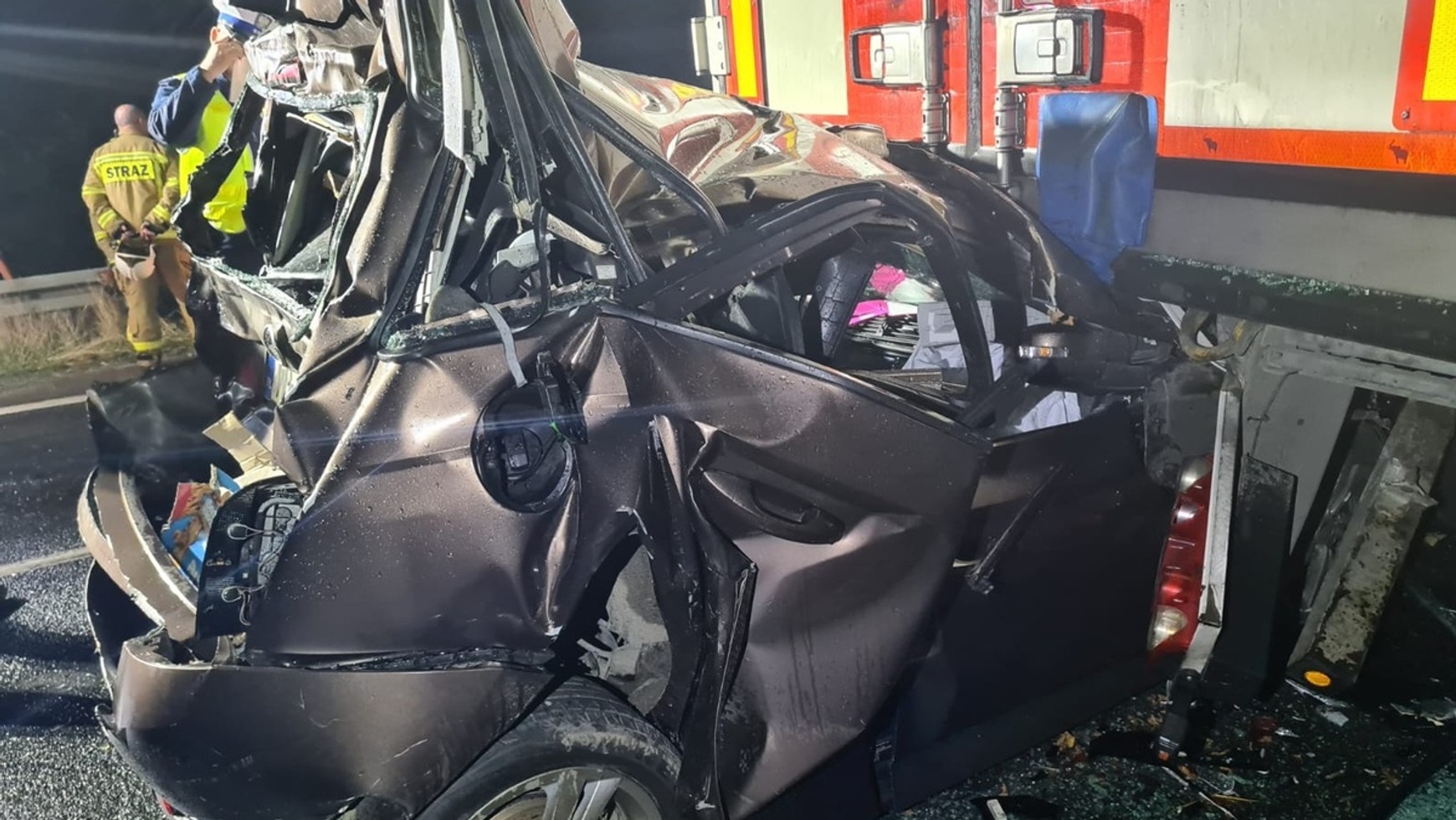 Prędkość ciężarówki była na tyle duża, że pojazd uderzył w tył Skody i wepchnął ją pod naczepę stojącej z przodu ciężarówki Volvo. Ogromna siła zderzenia sprawiła, że samochód osobowy zwinął się jak harmonijka. Mimo to troje pasażerów Skody, w wieku 31 i 32 lat oraz trzyletnie dziecko przeżyli wypadek i zostali odwiezieni do szpitala.
