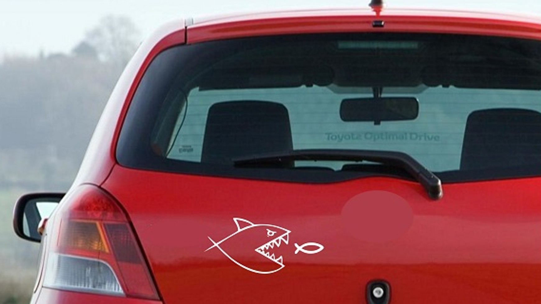 - Symbol rekina goniącego rybę staje się coraz bardziej popularną naklejką na autach, zwłaszcza w dużych miastach