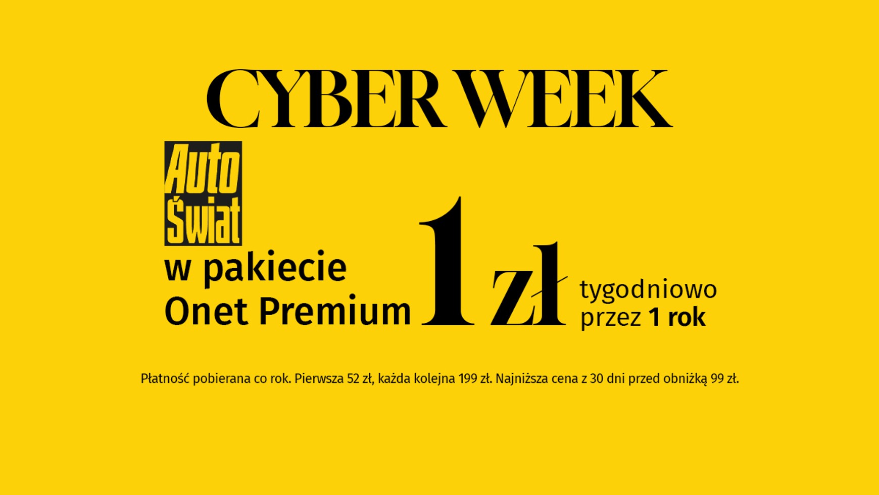 Te, właśnie powstające materiały, a także tysiące innych napisanych przez naszą redakcje, a także bratnie serwisy (m.in. Onet, Newsweek, Business Insider, Przegląd Sportowy, Forbes czy Komputer Świat) będziecie mogli przeczytać dzięki bardzo korzystnej promocji. Do 7 grudnia w ramach cyberweek dostęp do całego Onet Premium można kupić za 52 zł za cały pierwszy rok czytania*.