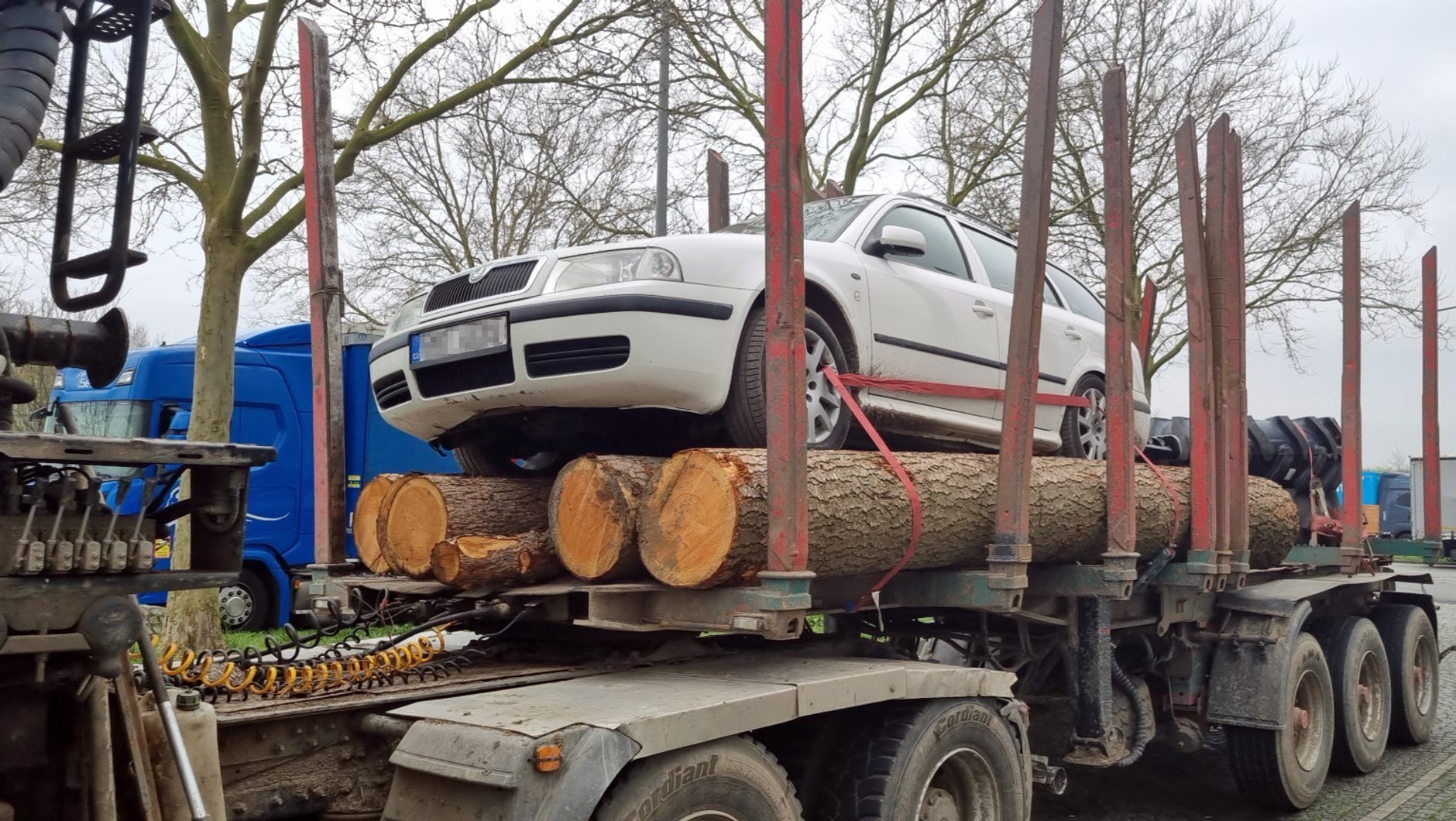 Do zatrzymania kierowcy ciężarówki jadącego autostradą A7 doszło na parkingu Göttingen-Ost. Jak się okazało, prowadzącym pojazd był obywatel Czech. Poza pniami drzew na naczepie ciężarówki znajdowała się także przymocowana na nich pasami Skoda. Oprócz niej kierowca przewoził też opony do pojazdu wolnobieżnego.