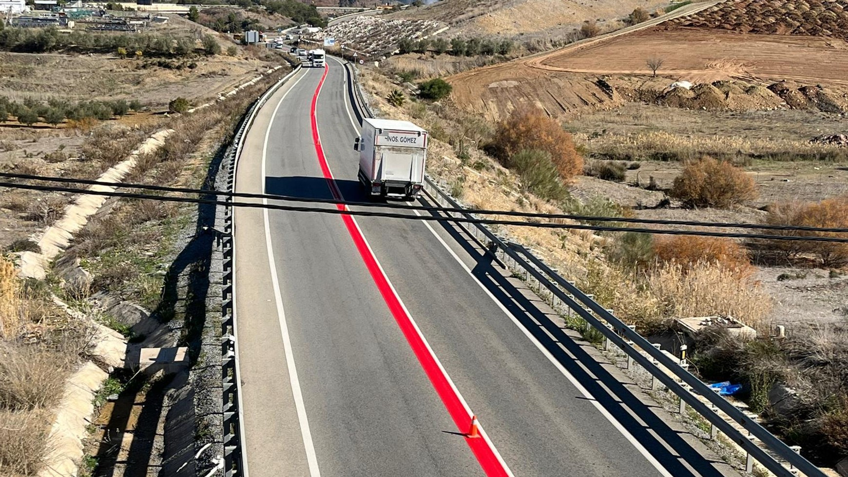 - Hiszpania wdraża pilotaż nowego rozwiązania w oznakowaniu jezdni — na szczególnie ryzykownych fragmentach dróg pojawia się czerwona linia umieszczona pomiędzy podwójną linią ciągłą