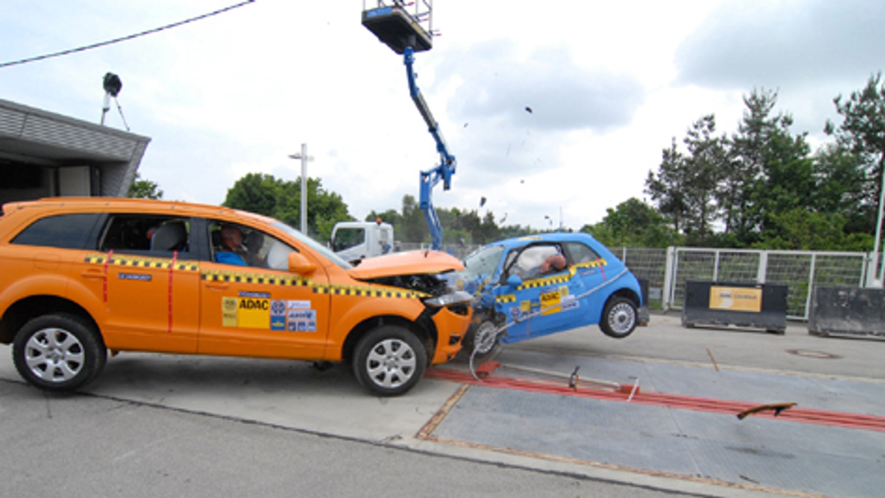 - Ochrona dzieci i pieszych - Podczas testów zderzeń czołowych i bocznych na tylnych siedzeniach w fotelikach zalecanych przez producenta auta umieszczane są manekiny dzieci w wieku 1,5 roku i 3 lat. Oprócz tego wykonywana jest seria testów obejmująca wypadki z dorosłymi i małymi pieszymi. Zderzenie ma miejsce przy 40 km/h. Test nóg pokazuje, jaką ochronę dolnych części nóg zapewnia zderzak. Kolejny sprawdzian pozwala określić, jakie obrażenia powoduje przedni skraj maski auta. Badane są także obrażenia głowy powodowane przez szczytową część maski.