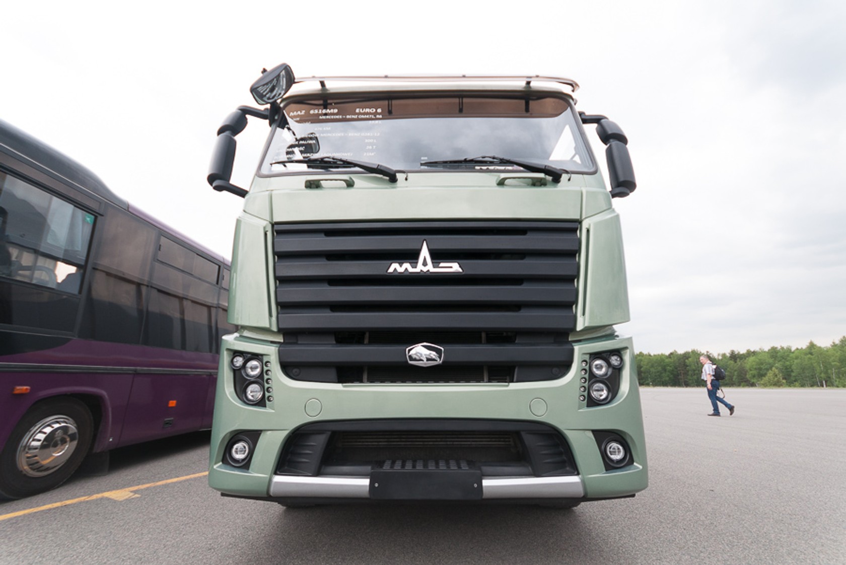Białoruś też korzysta z niemieckiej techniki. Oto MAZ z białoruską kabiną i silnikiem od Mercedesa. MAZ korzysta z motoru OM471 o mocy 475 KM. Na liście wyposażenia m.in. klimatyzacja, radio multimedialne, tempomat, ABS, ESP i niezależne ogrzewanie kabiny. NASTĘPNE PYTANIEPytanie 24/25