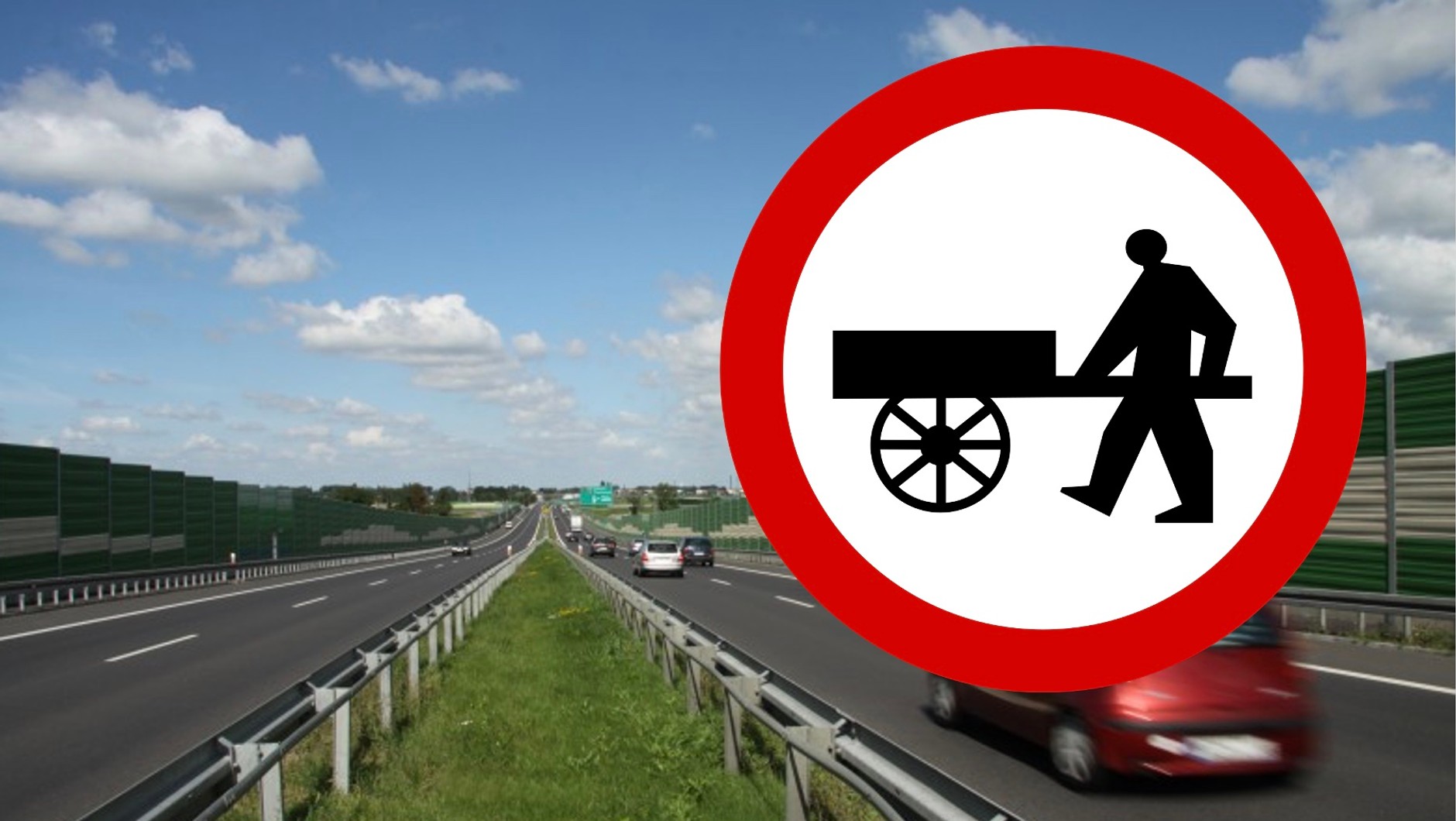 A więc co to jest "wózek ręczny do używania na jezdni"? Nie ma – przynajmniej formalnie – takich "pojazdów", które legalnie można by przemieszczać po jezdni, transportując jakiś towar. Oczywiście, wiadomo, o co chodzi – kiedyś na przeróżnych, czasem naprawdę dużych wózkach ludzie przemieszczali duże ilości towaru. Dziś – przynajmniej w naszym kraju – już nie. Znak i sam przepis są już martwe. Nie ma sensu zakazywać poruszania się wózkiem ręcznym po jezdni, skoro – co do zasady – jest to nielegalne.