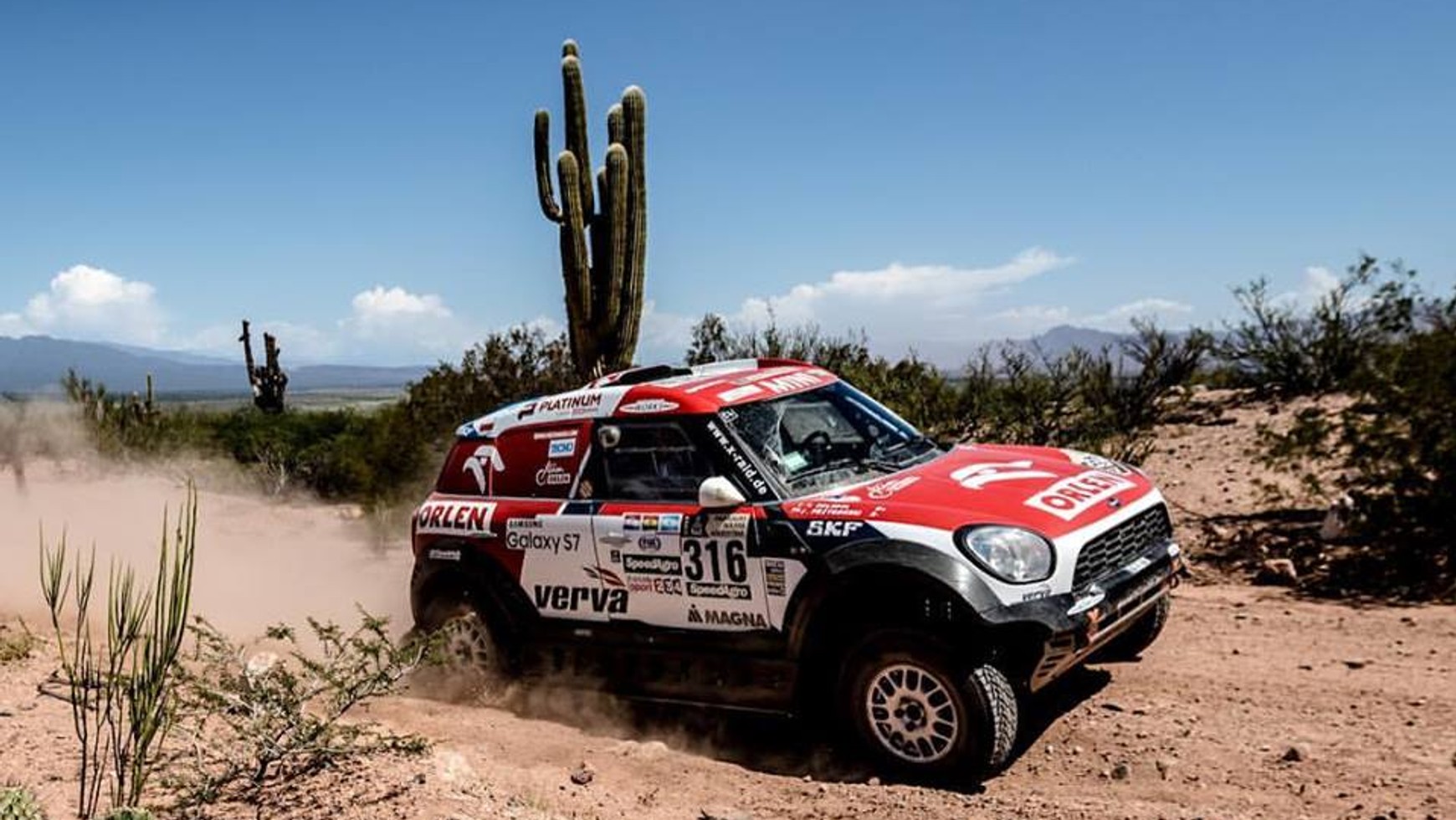 - Na początku jechaliśmy przez wydmy, co nie było łatwe, bo na tej wysokości samochód traci połowę mocy. Praktycznie nie miał siły podjeżdżać pod wydmy. Później droga już była lepsza, Tom nawigował na medal, mieliśmy dobre tempo i jechało nam się świetnie. Na trasie było bardzo wielu fanów. Jechaliśmy szutrową drogą, po obu stronach stali kibice, którzy nas dopingowali. To jest dopiero początek rajdu, jeszcze nie mamy połowy. Przed nami jeszcze wiele ciężkich etapów, musimy być czujni. Na pewno nie raz jeszcze coś nas zaskoczy, bo codziennie mamy jakieś niespodzianki. W piątek będzie trochę trudnej nawigacji, czeka nas też piasek i camel grass. Będziemy musieli uważać, żeby się nie zakopać. - powiedział Kuba Przygoński.