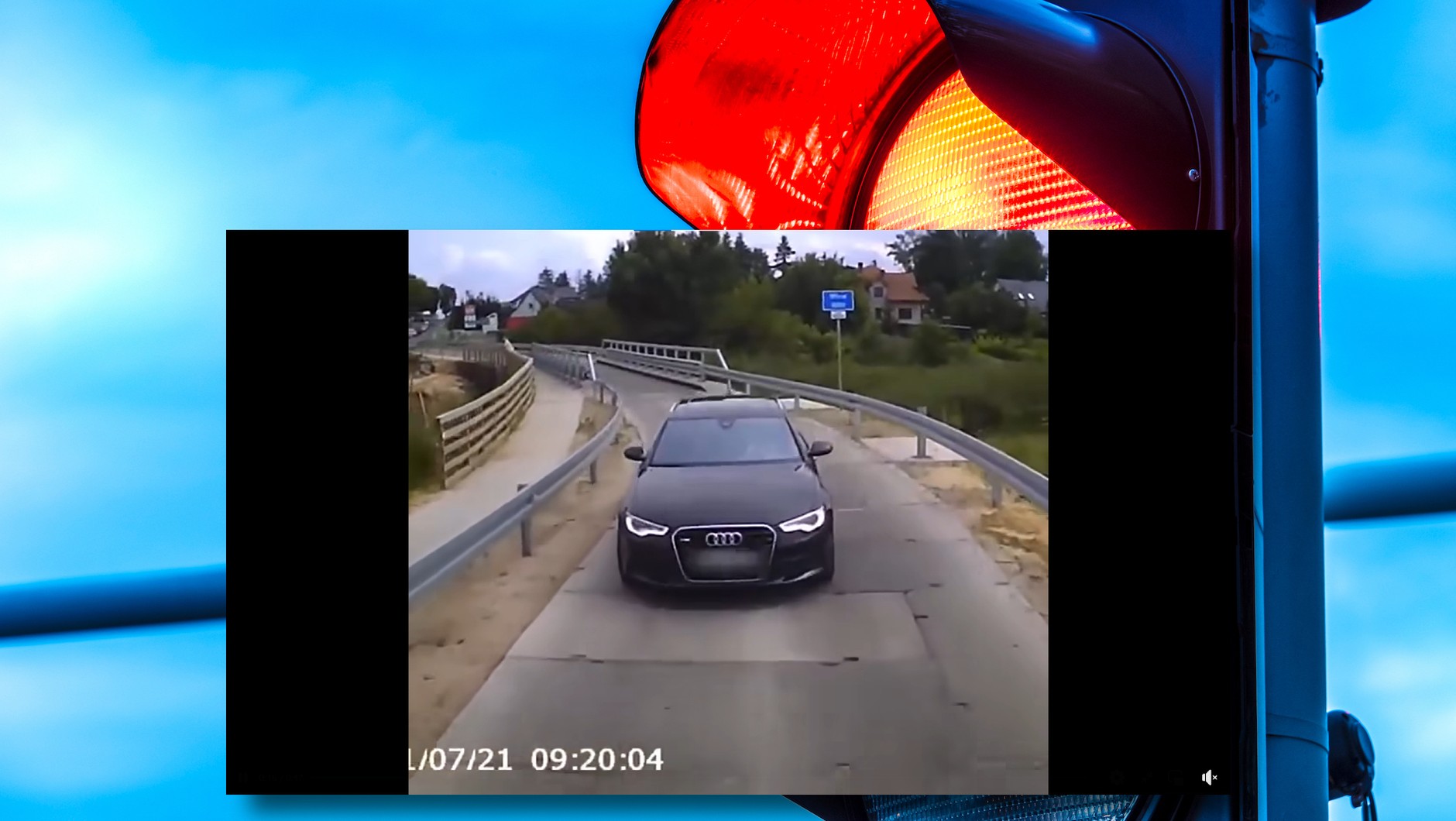 Kierowca ciężarówki nie zważa na to, że samochód nadjeżdża, bowiem już ma zielone, więc dochodzi do patowej sytuacji, w której oba pojazdy stają naprzeciwko siebie. W tym starciu zarówno pod względem przepisów, jak i wielkości na przegranej pozycji stoi Audi.