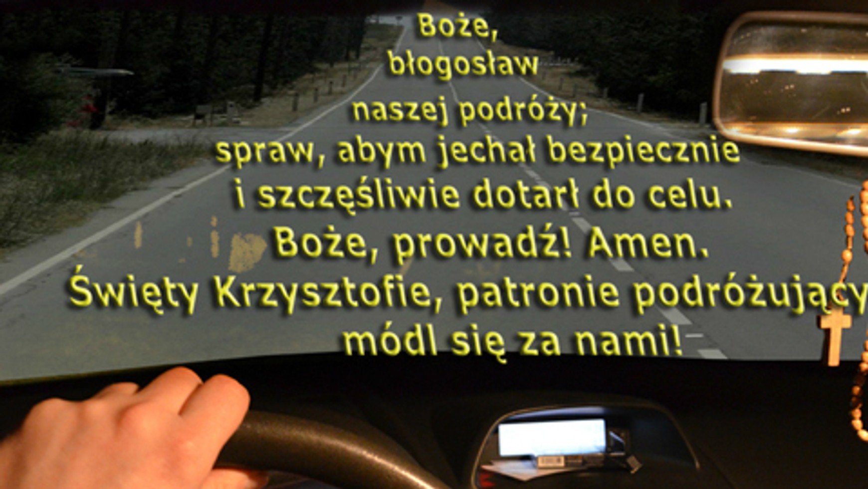 Na drogach całego świata każdego roku ginie 1 mln 300 tysięcy osób, z tego prawie 40 tysięcy w Europie. Według danych obwiniać za taki stan należy: brawurę, nadmierną prędkość i nieprzestrzeganie podstawowych przepisów. Te same czynniki są w Polsce przyczyną licznych wypadków z udziałem pieszych.Akcja przebiega pod hasłem „Kierowcy i podróżni ludźmi zawierzenia – na wzór bł. Jana Pawła II”. MIVA Polska i Krajowe Duszpasterstwo Kierowców zaprasza na: XI Ogólnopolską Pielgrzymkę Kierowców na Jasną Górę, która odbędzie się 12 maja 2012 roku.Program:11.00 - Msza św. w kaplicy Obrazu Jasnogórskiego w intencji wszystkich kierowców i podróżujących12.00 - Zawierzenie Kierowców i Podróżujących opiece Matki Bożej Jasnogórskiej, Królowej Polski i św. Krzysztofa12.15 - Poświęcenie pojazdów na parkingach wokół Jasnej Góry13.30 - Droga Krzyżowa na wałach jasnogórskich w intencji wszystkich ofiar wypadków drogowychDekalog Kierowcy (od MIVA Polska):Jesteś kierowcą na drodze i nie jesteś na niej sam. Ponad wszystkim jest Pan Bóg Twój, więc zawsze o tym pamiętaj:1. Nie będziesz egoistą na drodze.2. Nie będziesz ostry w słowach, czynach i gestach wobec innych ludzi.3. Pamiętaj o modlitwie i uczczeniu św. Krzysztofa, kiedy wyruszasz w drogę – umiej też podziękować.4. Szanuj pieszych.5. Nie zabijaj – bądź trzeźwy.6. Zapnij pasy – będziesz bezpieczny.7. Nie bądź brawurowy w prędkości.8. Nie narażaj siebie i innych na niebezpieczeństwo.9. Pomagaj potrzebującym na drodze.10. Przestrzegaj przepisów drogowych, szanuj pracę Policji.