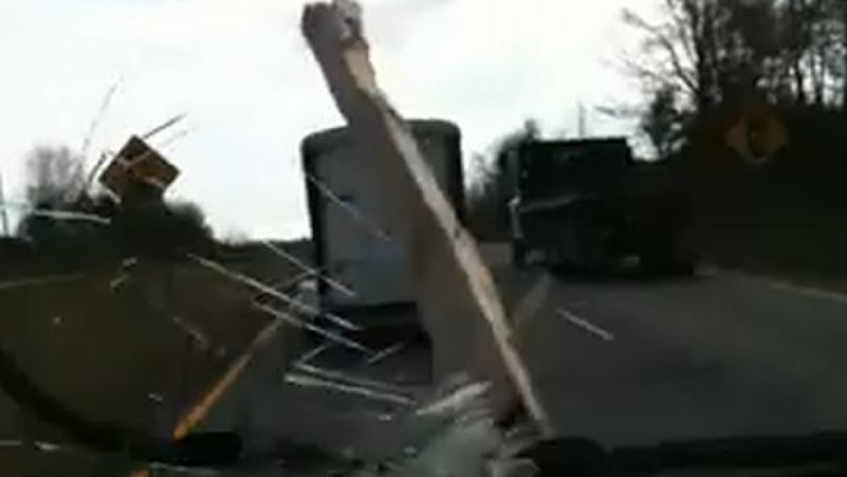 W internecie krąży film, na którym widać ciężarówkę i samochód z przyczepą, które blokują ruch na dwupasmowej drodze. To wszystko nagrywane jest za pomocą telefonu komórkowego przez kierowcę trzeciego samochodu, jadącego z tyłu. Kiedy ciężarówka zrównuje się z autem ciągnącym przyczepę i jadą tak obok siebie przez dłuższą chwilę, nagle spod kół tego drugiego wystrzela długa deska, która leżała na pasie ruchu i z impetem wbija się w szybę samochodu jadącego z tyłu. Gdyby uderzenie nastąpiło o kilkadziesiąt centymetrów w lewo, prawdopodobne jest, że deska zabiłaby lub ciężko raniła kierowcę.