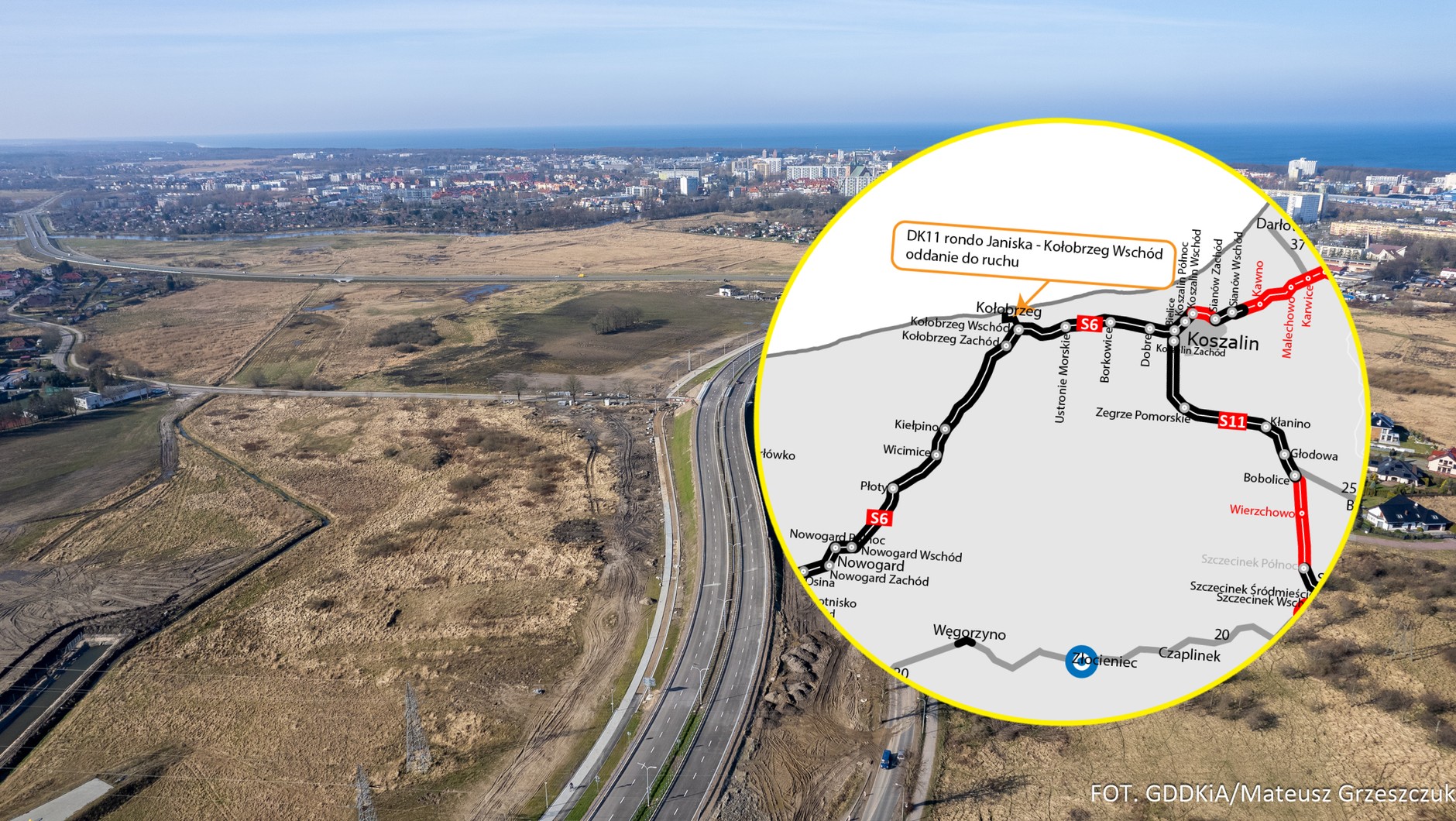 Sieć drogowa w tym rejonie ma już swój docelowy kształt. DK11 (jako S11 posiadając klasę drogi ekspresowej) biegnie od węzła Bielice w pobliżu Koszalina wspólnie z drogą S6 w kierunku Kołobrzegu. Na węźle Kołobrzeg Wschód DK11 już w klasie drogi GP odchodzi od drogi S6 i biegnie nowym przebiegiem DK11 omijając centrum Kołobrzegu do swojego punktu początkowego – kołobrzeskiego portu.