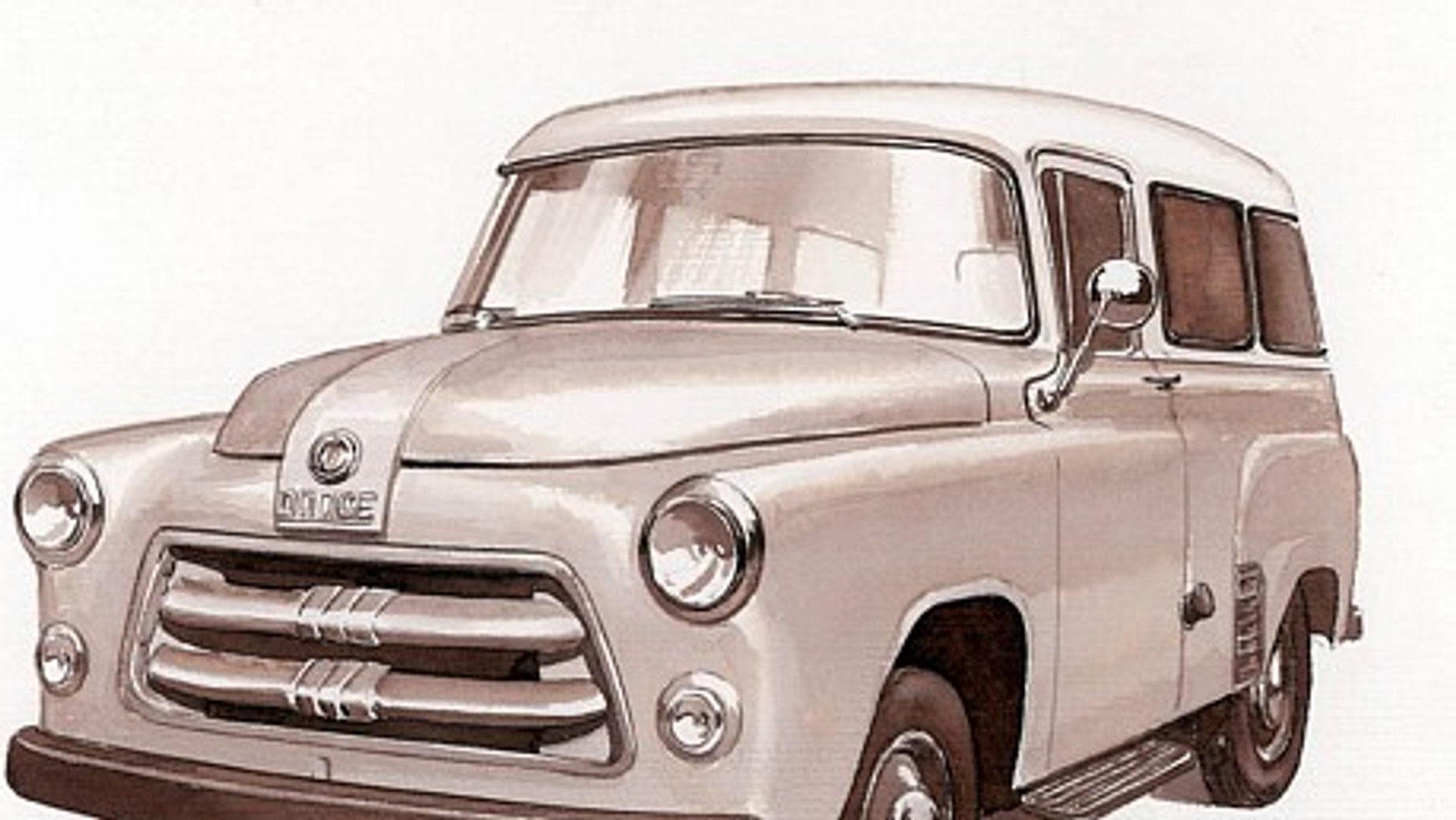 W 1912 roku bracia postanowili "pójść na swoje" i budować własne auta. W 1916 roku firma Dodge była czwarta pod względem sprzedaży na rynku amerykańskim, a cztery lata później zajmowała już drugą pozycję zaraz za Fordem. W 1928 roku bracia Dodge sprzedali firmę Chryslerowi za 126 mln dolarów. Pierwszy dostawczy pojazd marki Dodge powstał w Anglii w 1916 roku. Kompletne podwozia z silnikami były sprowadzane z USA, a nadwozia produkowały londyńskie firmy. Samochody Dodge były też pierwszymi pojazdami używanymi przez armię amerykańską. Trzy sztuki "cywilnych" samochodów w wersji torpedo pomalowanych jedynie na kolor oliwkowy uczestniczyły w akcji porucznika George'a Pattona przeciwko oddziałom Pancho Villa, które 9 marca 1916 roku zaatakowały miasto Columbus w Nowym Meksyku. Prezentowany egzemplarz powstał w 1956 roku w oparciu o wcześniejszy model dostawczy. Od poprzednika był bardziej komfortowo wyposażony i oferowany w wersji 6- i 8-osobowej. Gama silników obejmowała 6-cylindrową, rzędową jednostkę o mocy 115 KM oraz 169-konną V8.