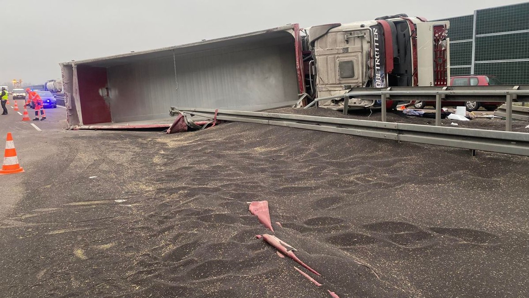 Jak poinformowała świdnicka policja, do wypadku doszło w środę 23 listopada na trasie S17 na wysokości miejscowości Janówek. Przed godz. 13.00 wywróciła się w tym miejscu ciężarówka z rzepakiem. Leżący na boku zestaw pojazdów zablokował jeden pas ruchu w kierunku Lublina i jeden pas w kierunku Chełma. Inni kierowcy musieli się więc liczyć z dużymi utrudnieniami do czasu uprzątnięcia drogi.