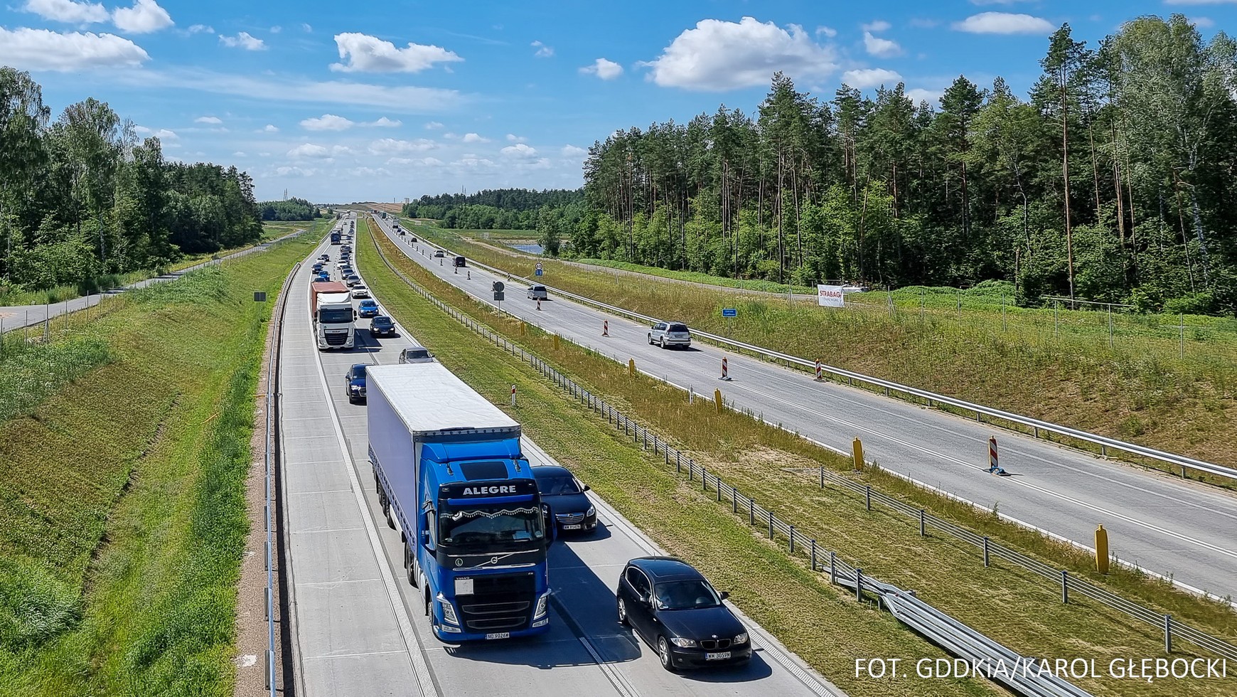 "Kolejnym ułatwieniem dla kierowców będzie likwidacja objazdów odbywających się do tej pory drogami zbiorczymi i skierowanie ruchu za węzłem Dłużniewo do Płońska na lewą jezdnię trasy głównej" - informuje GDDKiA. Dziewięć kilometrów pozostaje z ruchem po jednej jezdni. Obie jezdnie zostaną udostępnione w drugiej połowie sierpnia.