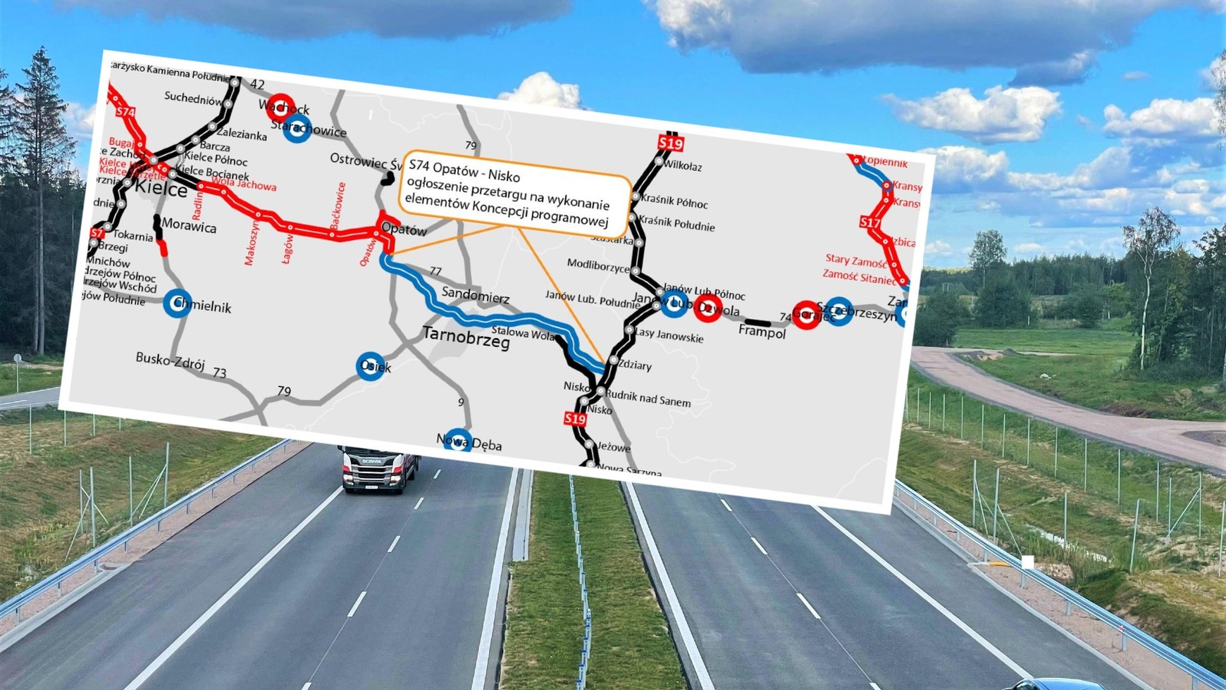 - Droga S74 docelowo połączy autostradę A1 z trasą S19, przebiegając przez województwa łódzkie, świętokrzyskie i podkarpackie