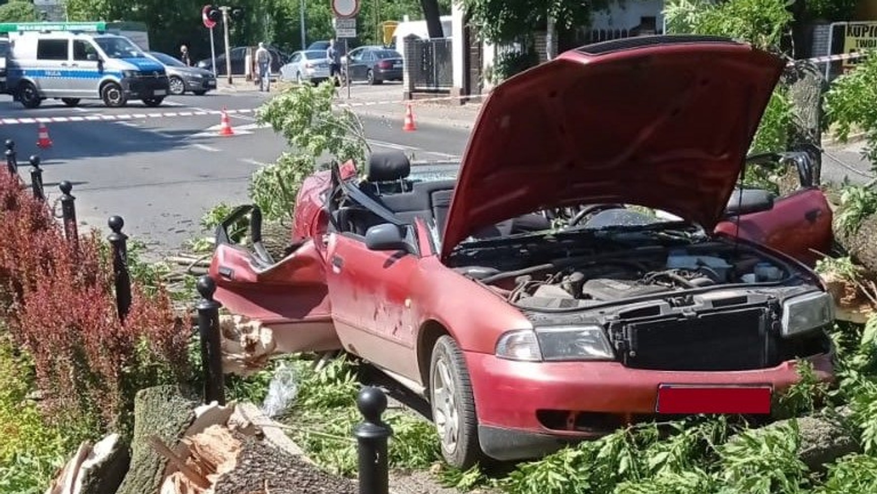 Do wypadku doszło w poniedziałek rano. "Z nieustalonych dotąd przyczyn drzewo rosnące na poboczu drogi zwaliło się na jadące ulicą Dworcową audi A4. Obrażeń ciała dostały dwie osoby: kierująca samochodem i pasażerka" - relacjonowała rzeczniczka.