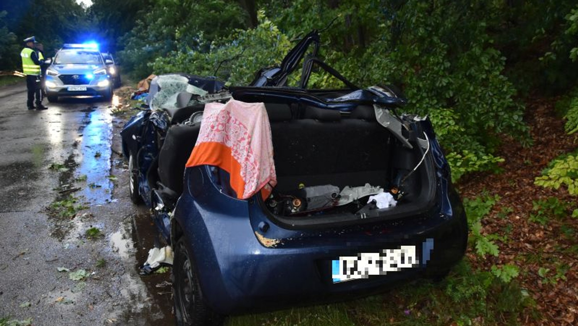 Pierwszego lipca 2022 r. około godz. 18.00 na trasie pomiędzy Chojnicami a Bytowem na wysokości miejscowości Wolność powalone przez wiatr drzewo spadło na jadący samochód osobowy. Ze wstępnych ustaleń funkcjonariuszy pracujących na miejscu zdarzenia wynika, że 45-letnia mieszkanka gminy Chojnice wraz ze swoją 37-letnią koleżanką oraz trójką dzieci jechały z Kopernicy do Chojnic. Na wysokości miejscowości Wolność powalone drzewo przygniotło ich samochód.