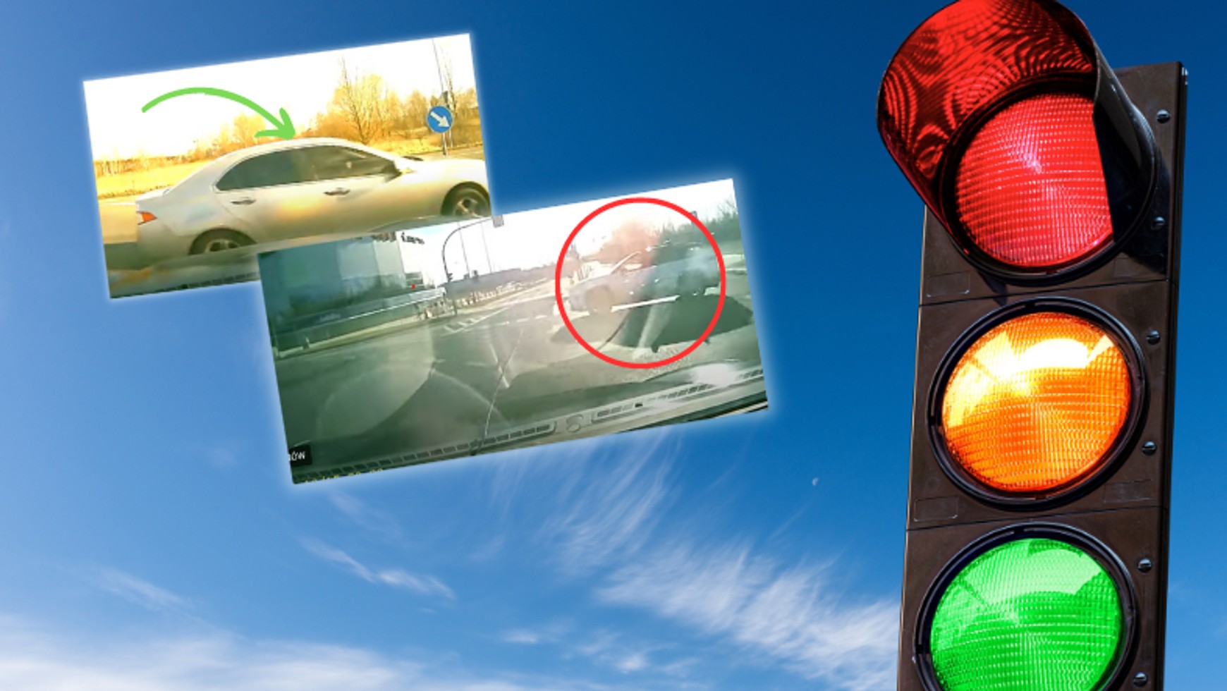 Youtubowy kanał "Bandyta z kamerką" opublikował nagranie pokazujące jazdę jednego z widzów w okolicach Poznania. Króciutkie wideo pokazuje, jak kierowca wjechał na skrzyżowanie z "mrugającą" sygnalizacją świetlną, co sugeruje jej wyłączenie. Jednak w myśl ustawionych przy drodze znaków, pierwszeństwo miały (patrząc z perspektywy autora nagrania) osoby skręcające w lewo.