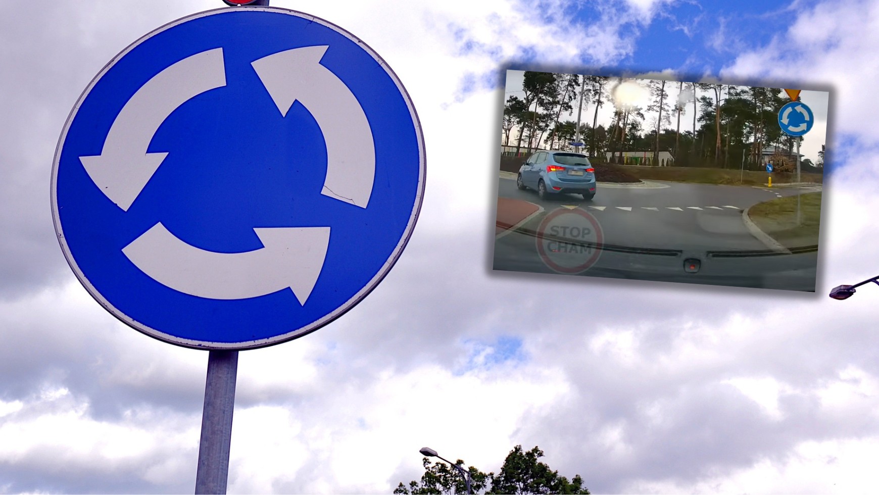 Na opublikowanym przez kanał motoryzacyjny Stop Cham nagraniu widać niebieski samochód, który wjeżdża na rondo w Otwocku z włączonym lewym kierunkowskazem. Cześć kierowców robi tak, aby dać znać, że nie zjeżdża pierwszym zjazdem. Jednak w tym przypadku. Kierowca włączył kierunkowskaz, aby objechać wyspę centralną wbrew przepisom i znakom.