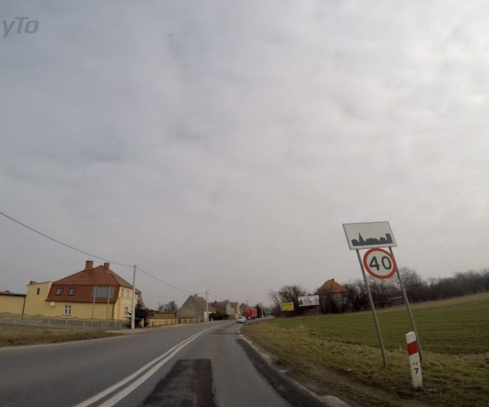 Z jaką maksymalną prędkością wolno Ci poruszać się na obszarze zabudowanym oznakowanym w sposób widoczny na zdjęciu?